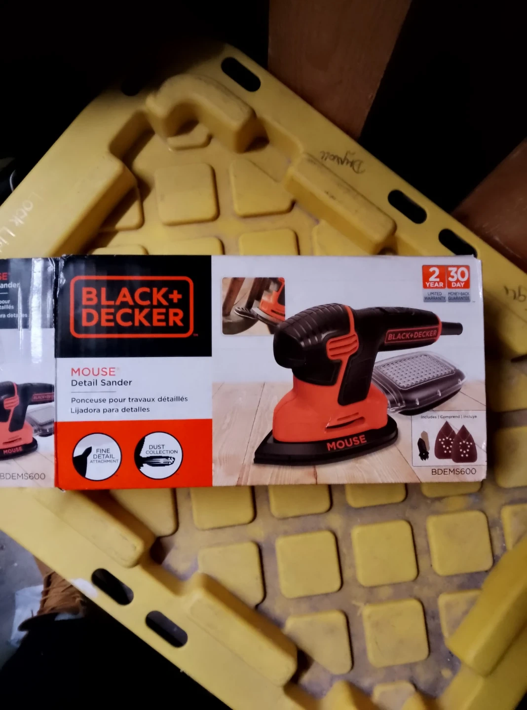 This is a Black+Decker Mouse Detail Sander, model BDEMS600. It's designed for detailed work with fine attachment and dust collection. Includes original box and manual. It's great for woodworking projects!