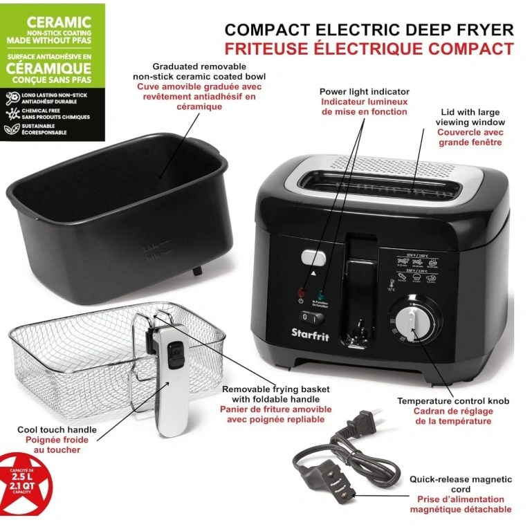2.5L Oil Fryer with Removable Ceramic Bowl