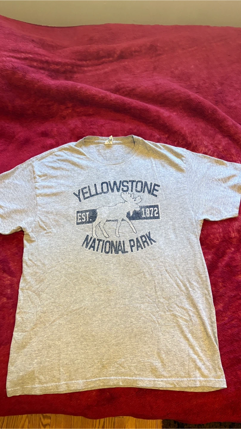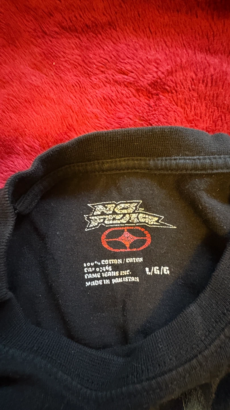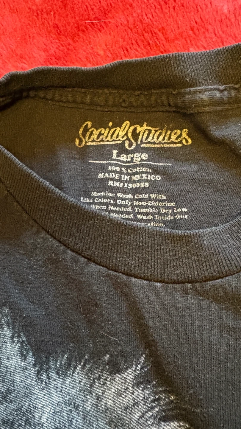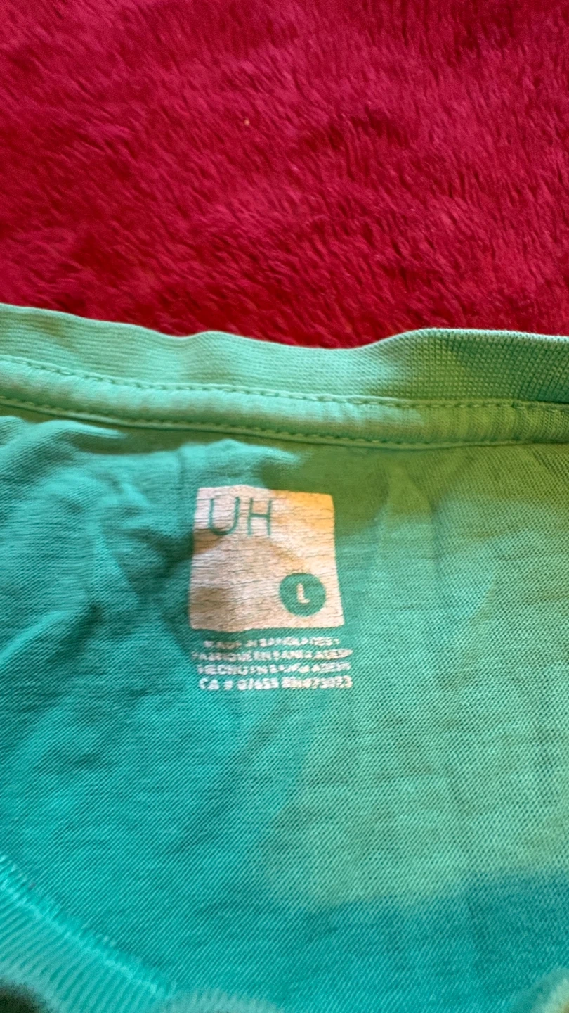 Selling a bundle of four men's graphic t-shirts in size large. Includes a black No Fear shirt, a black California 53 shirt, a teal City of Angels shirt, and a black lion shirt. All are in good condition!