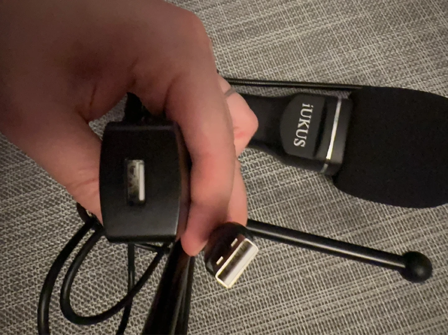 Black iKUS USB microphone, perfect for recording or streaming. Comes with a pop filter and is powered via USB.