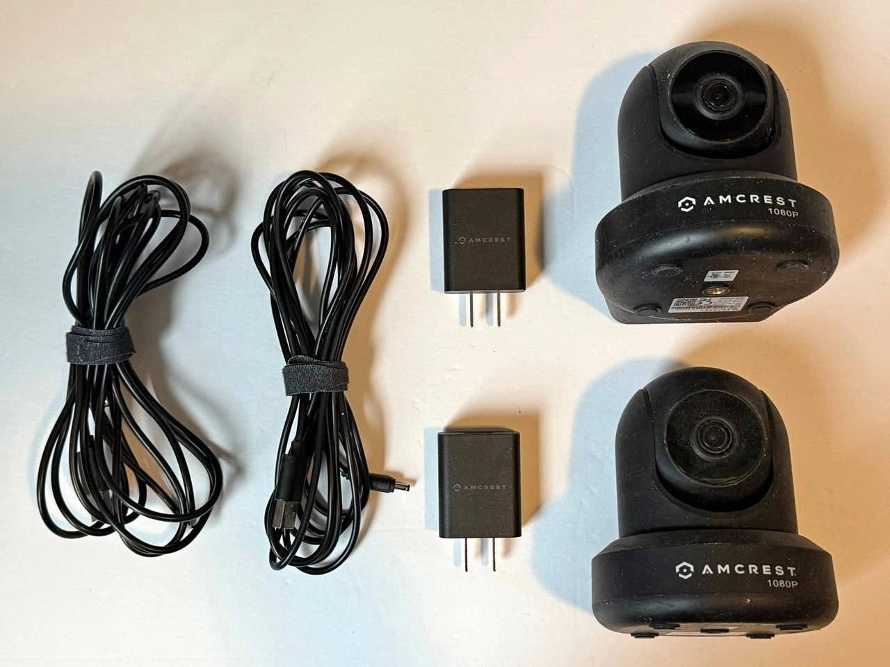 103Like new condition. Comes with 2x power cables and 2x AC adapters. Experience magnificent full-HD 1080P video at 30fps with enhanced low light capability. Extra-wide 90° viewing angle, as well as remote pan and tilt, allows you to cover more ground. Works with Amazon Alexa through Amcrest Cloud. Receive motion alert notifications, review footage and engage in two-way communication via your smartphone with the Amcrest View app. Playback and record professionally on a PC using Amcrest Surveillance Pro or Blue Iris Professional. Works with Amcrest Cloud remote video storage, MicroSD card, Amcrest NVRs, and QNAP NAS, FTP, Pale Moon (32bit) & SeaMonkey Browsers, IE, Safari 11, Firefox 49.0 and Chrome with Amcrest Web View Extension. Featuring a Exmor 1/2.9” 2.07MP image sensor and built-in IR LEDs this WiFi camera achieves industry leading 1080P night vision up to 32 feet. The optional Amcrest Cloud remote video storage subscription service allows you automatically store your videos off-site. This way if something happens to your local PC/NVR/SDcard/NAS, the footage will be safely recorded in a secure off-site location and accessible to you through a web-based Flash interface for PC (Windows & MAC) (Chrome/Firefox/Safari/Edge) and Amcrest Cloud smartphone app.