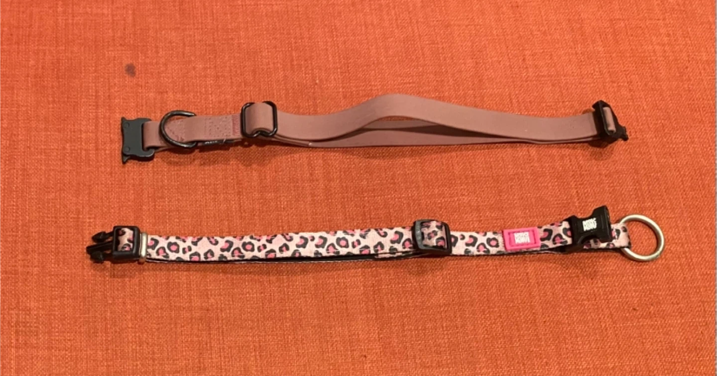 220Two dog collars for sale! One is a plain, waterproof, dusty rose colour (One Paw) and the other has a pink leopard print design (Max & Molly). Rose colour minimum 12” and leopard print minimum of 11.5”. Pick up at Weston and Eglinton.