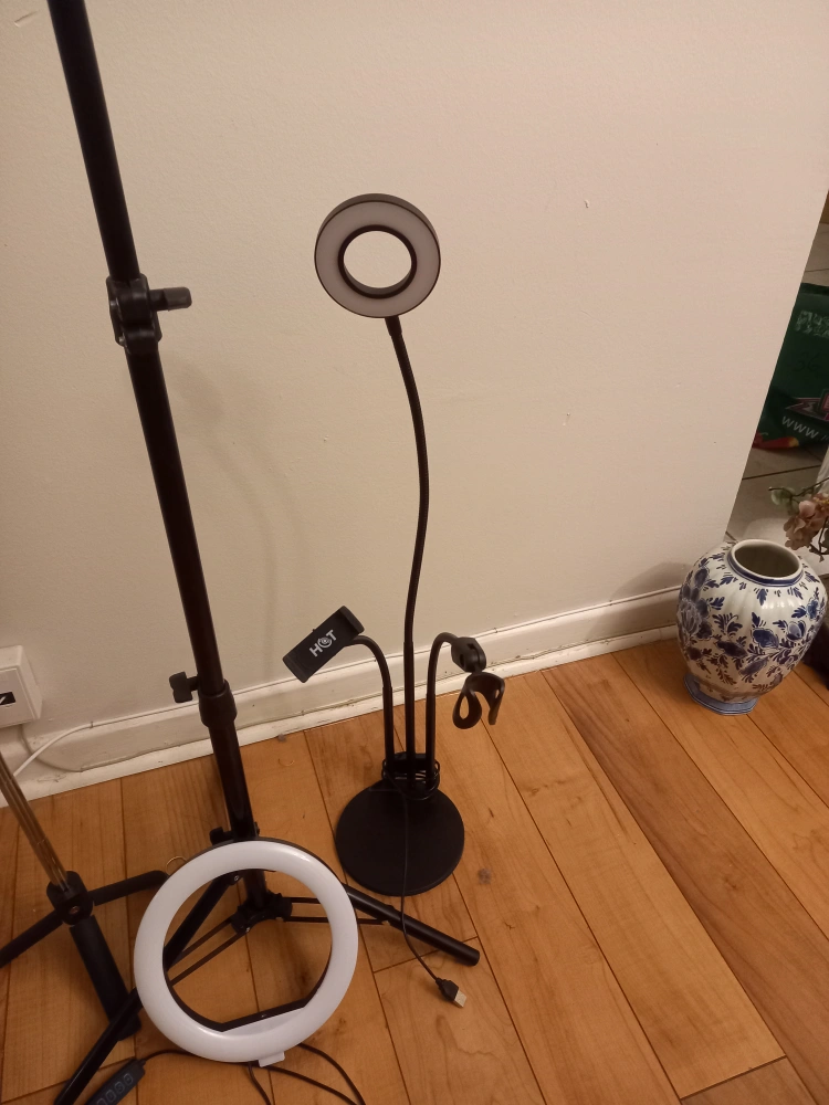 2x Tripod: table tripod, height no longer than 75cm. No further details can be provided. Buy as is.