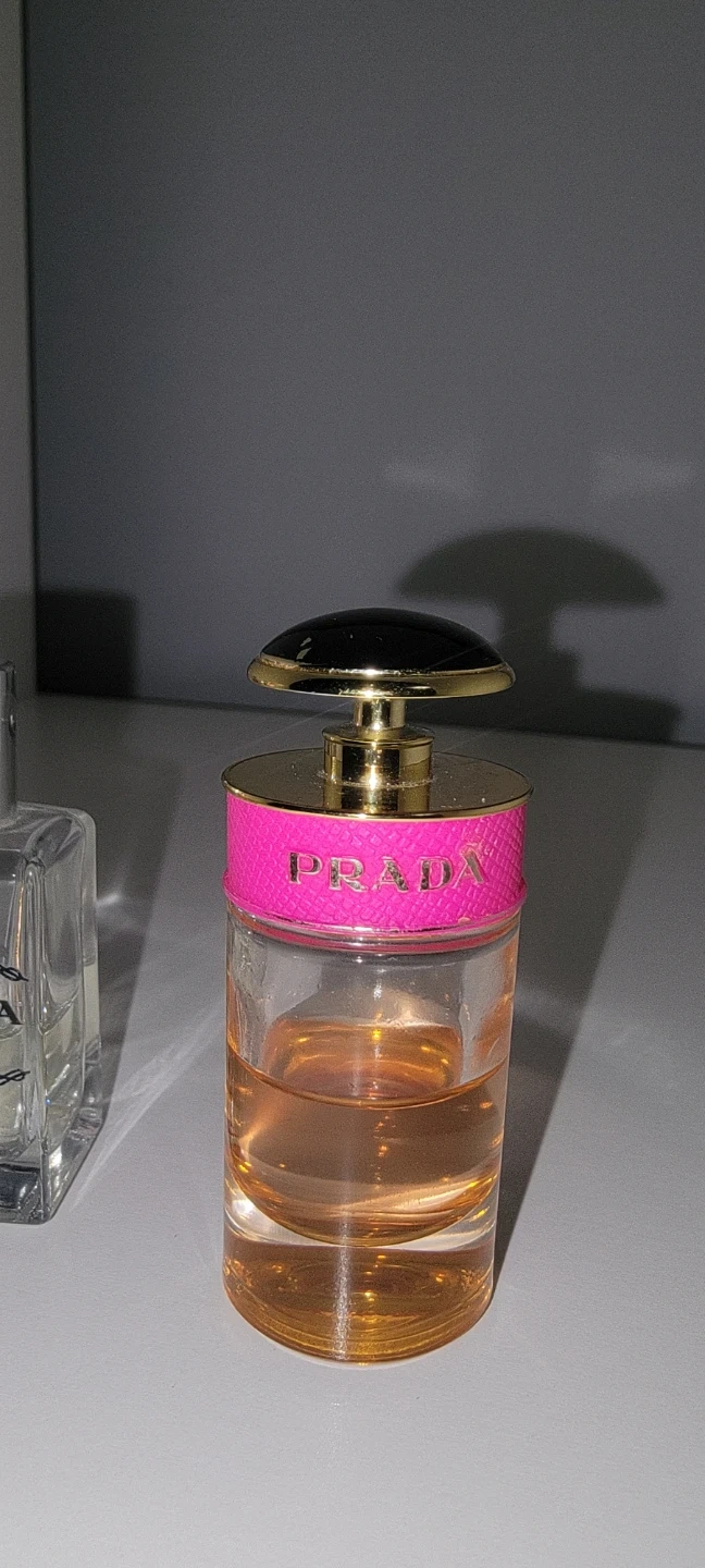 This 6.5ml mini PRADA Eau de Parfum for Women comes in a lovely pink bottle. The fragrance is housed in a clear glass bottle with a gold accent and a pink band around the neck. It's a beautiful scent for everyday wear.