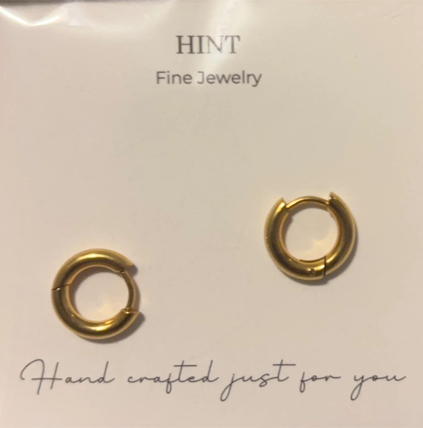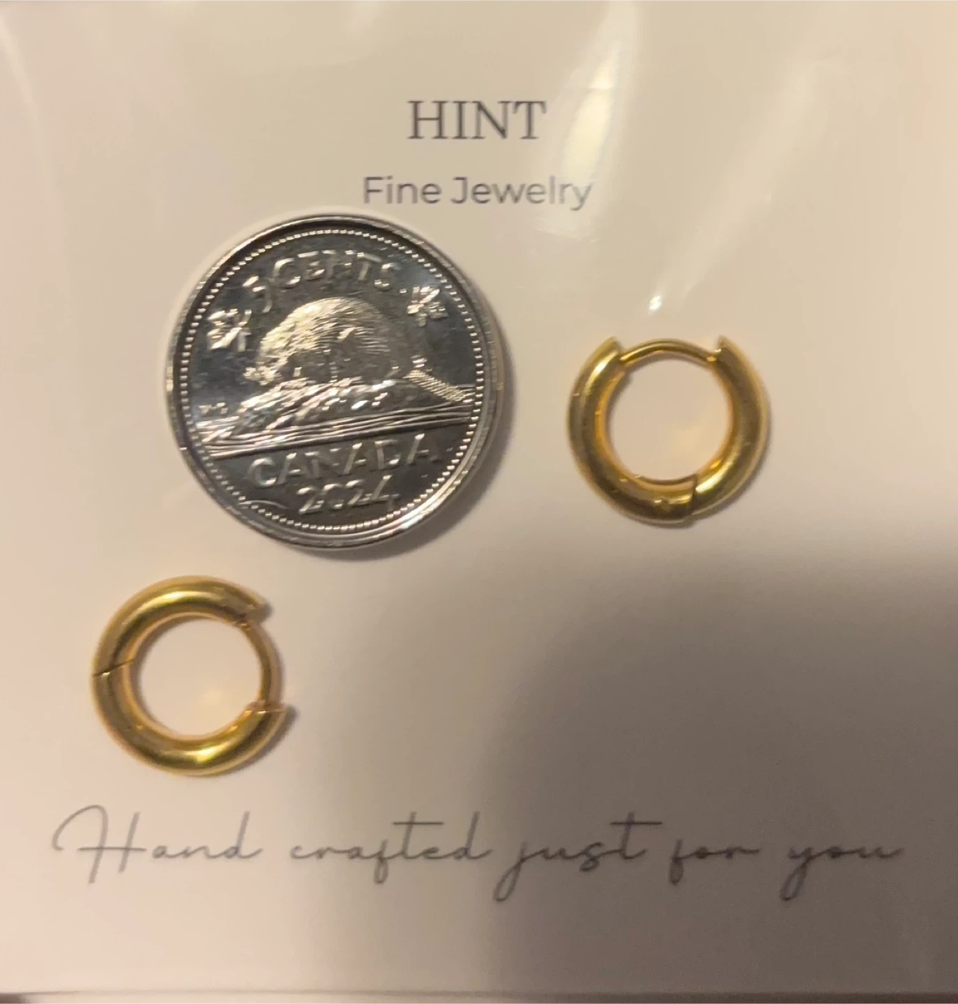 I bought these earrings from a small business online. Unfortunately I selected the wrong size. 8mm, Crafted with 18K Gold PVD on stainless steel. Hypoallergenic and water resistant.