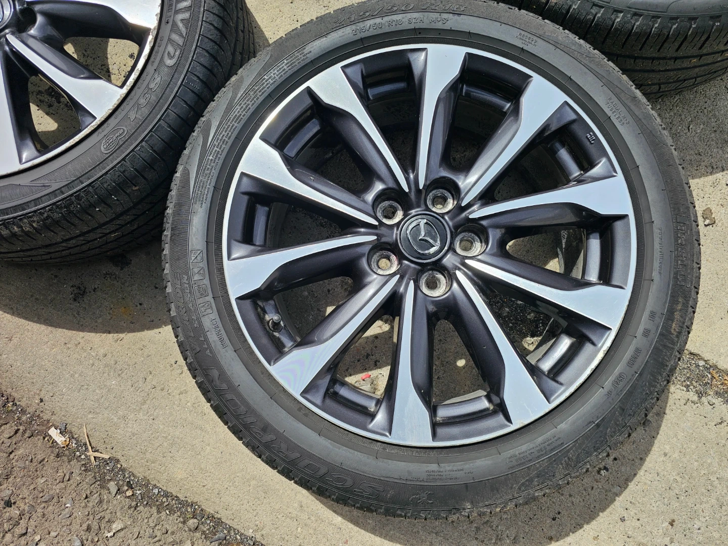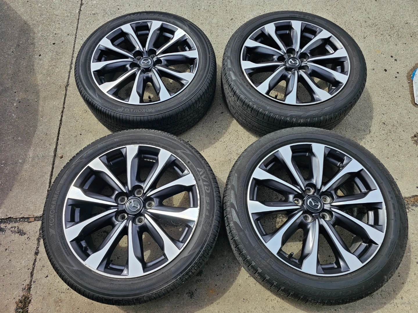 Set of 4 original 18" mazda cx-3 rims and all season tires 215/50 R18. Rims and tires are in good shape, no bend, no cracks, minor curb rash. 2 tires are Pirelli brand, 2 others are Yokohama with 1 to 2 season left on them