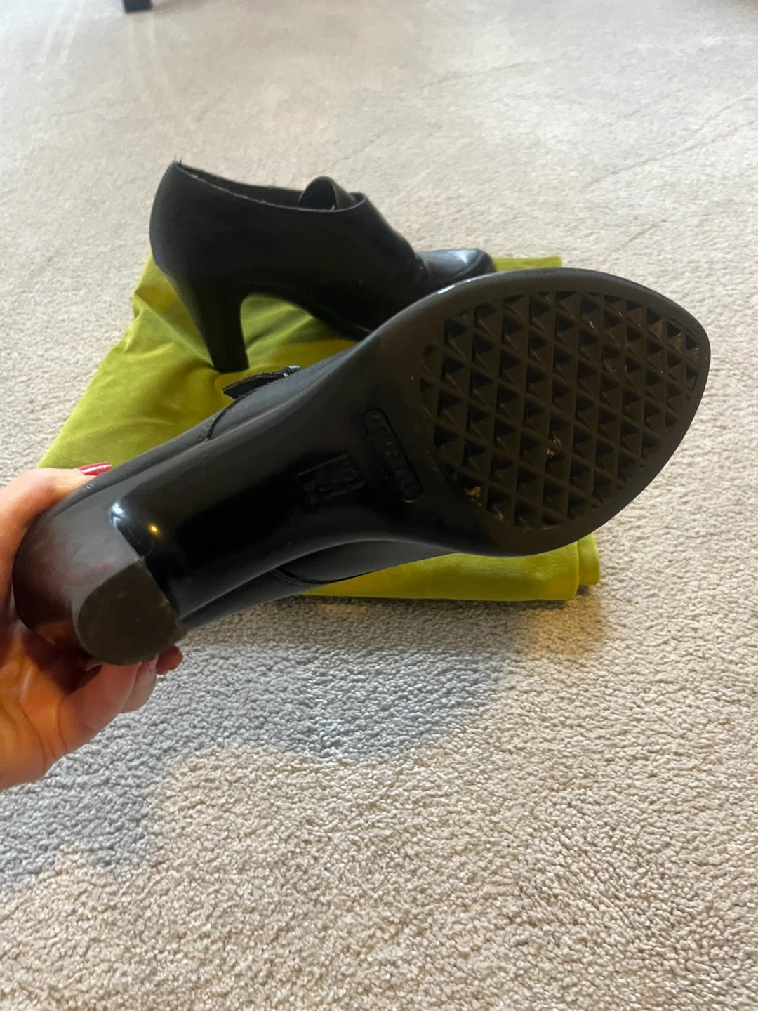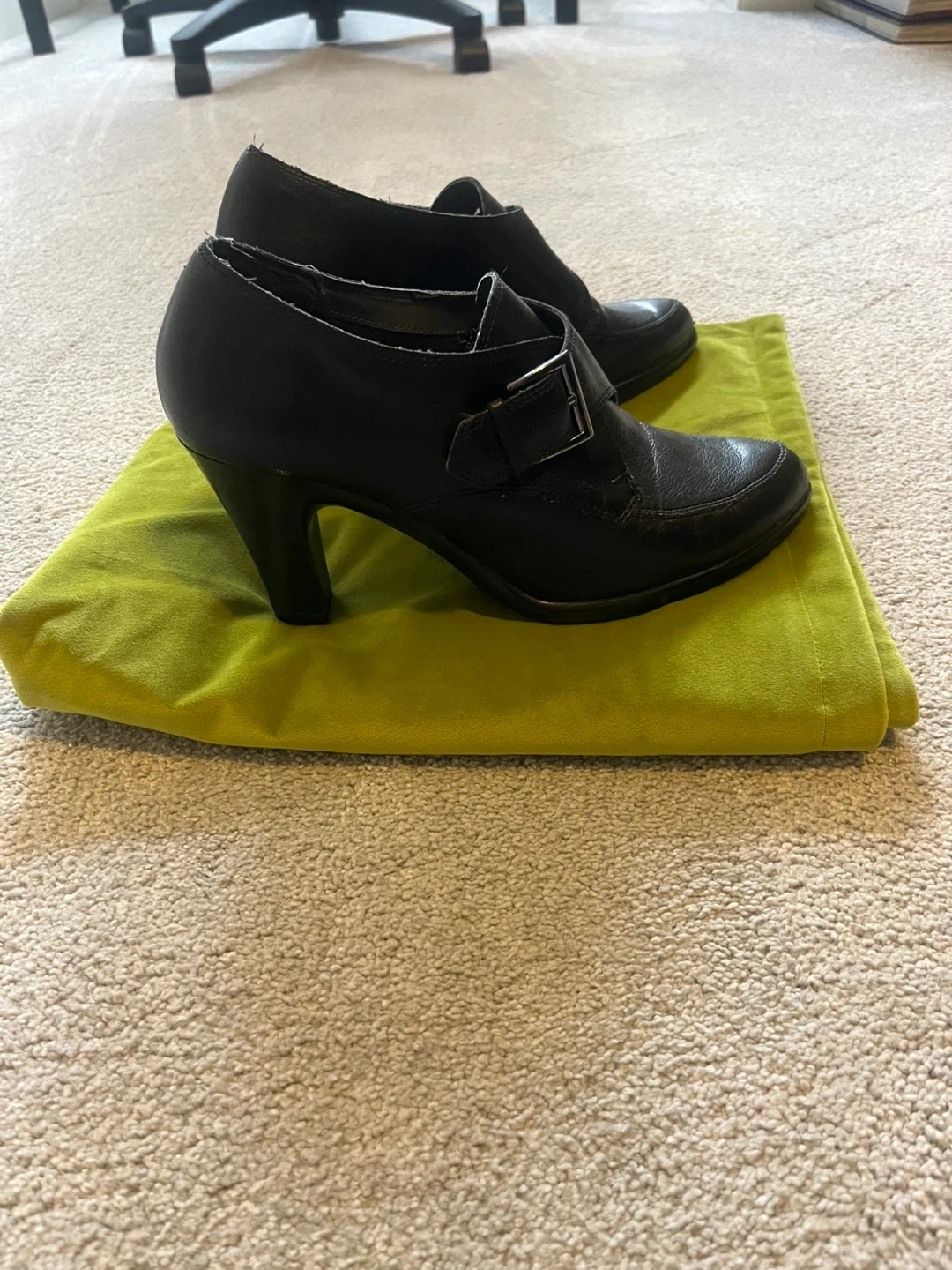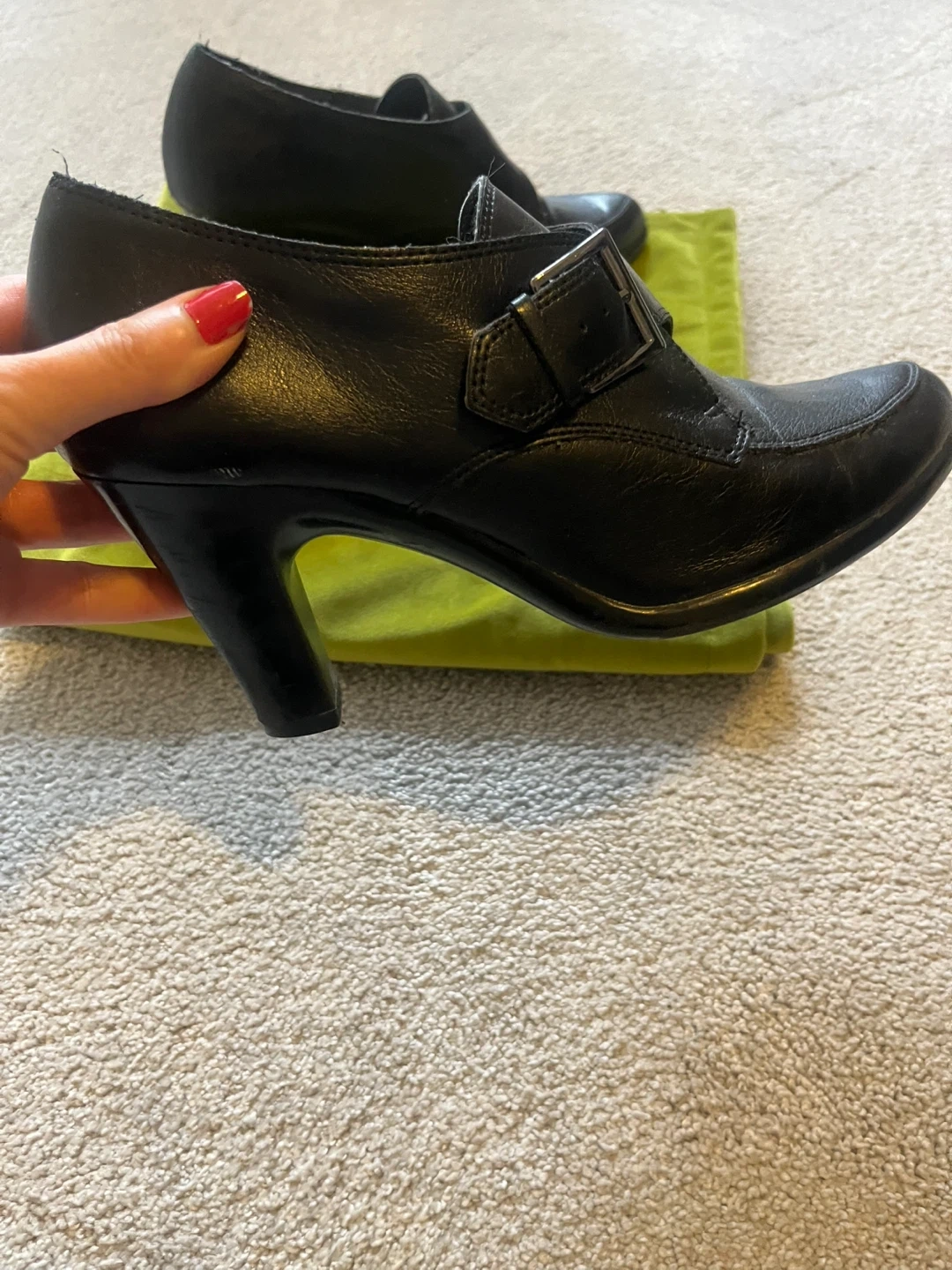 These black leather ankle boots from Aerosoles feature a stylish buckle detail. Made with quality leather. Perfect for dressing up or down! I also love the tread underneath of them, which is perfect for wintry weather. I live near Bayview Village shopping centre in North York but also can meet you anywhere on the Yonge line downtown Toronto.