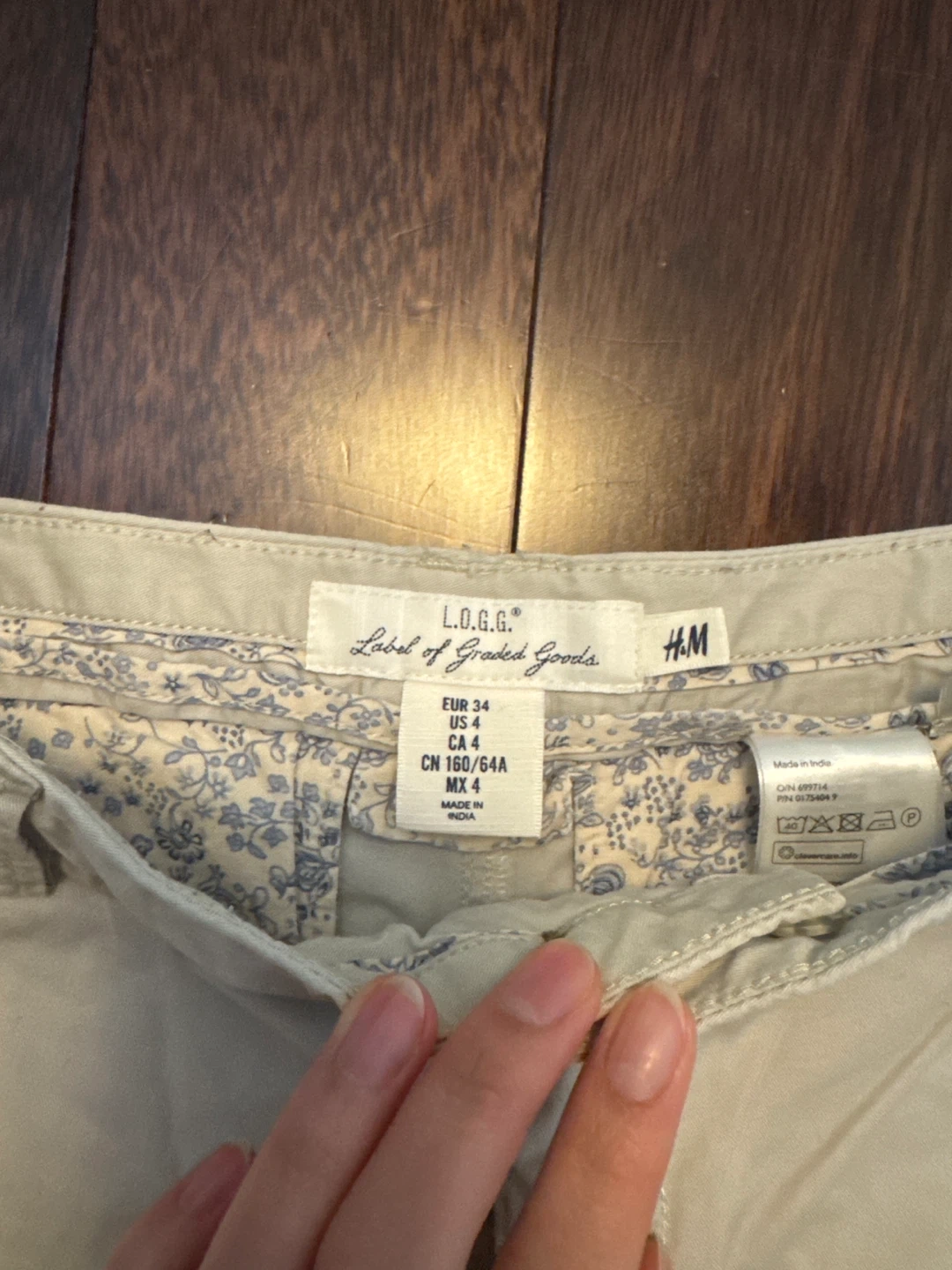 Beige shorts are from H&M's L.O.G.G. collection. Features floral print inside. Perfect for casual wear, barely worn