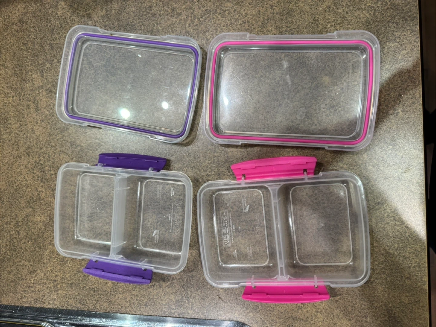 Selling a set lunch boxes! They come in a variety of colours, perfect for packing lunches or a snacks on the go! They are in used condition.