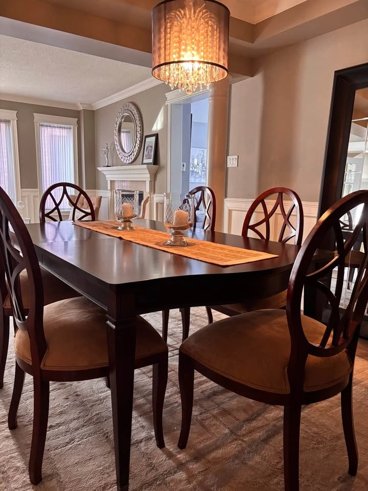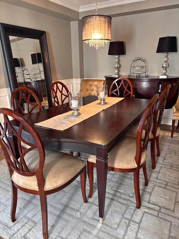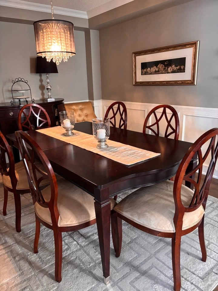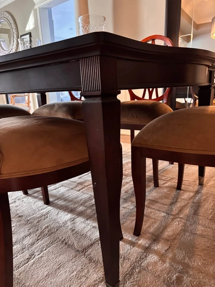 Solid wood dining table. dark wood finish.