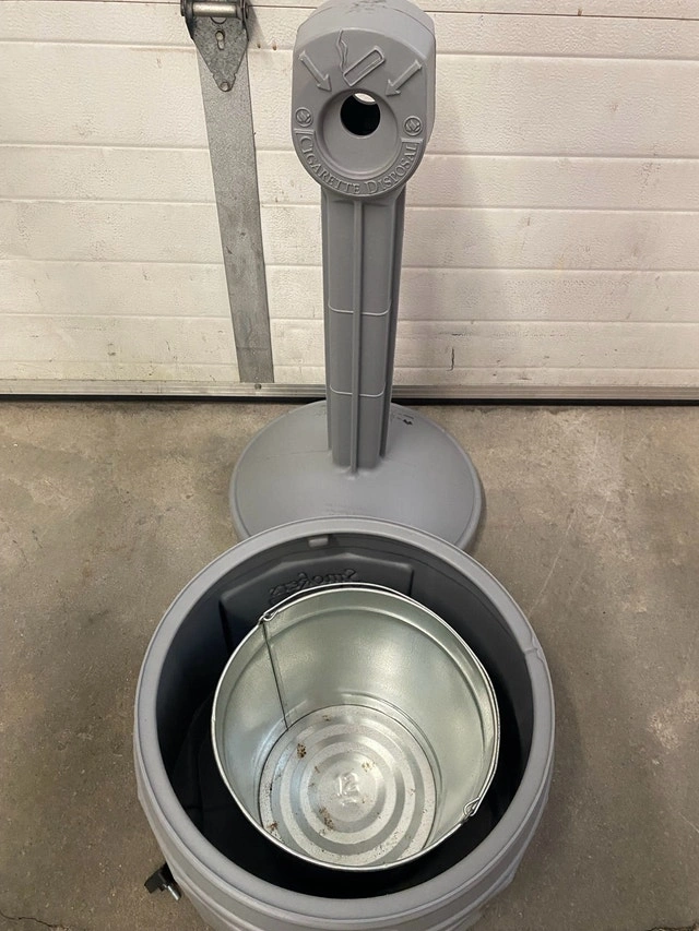 Free Standing Cigarette Receptacle. 4 Gal. Capacity, 38-1/2” Height. Used for 1 shift for 1 smoker. Very clean condition. Pick up only.