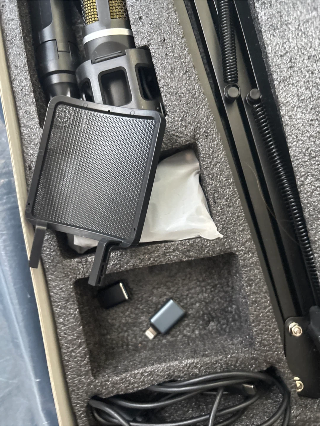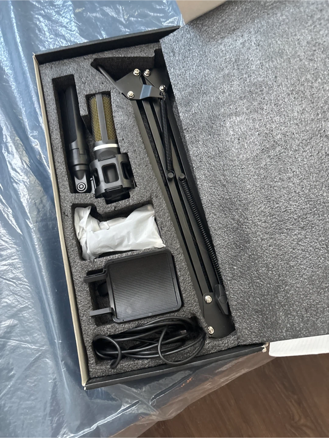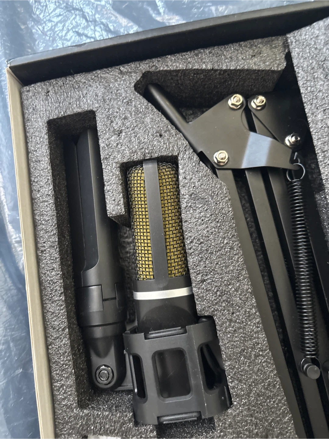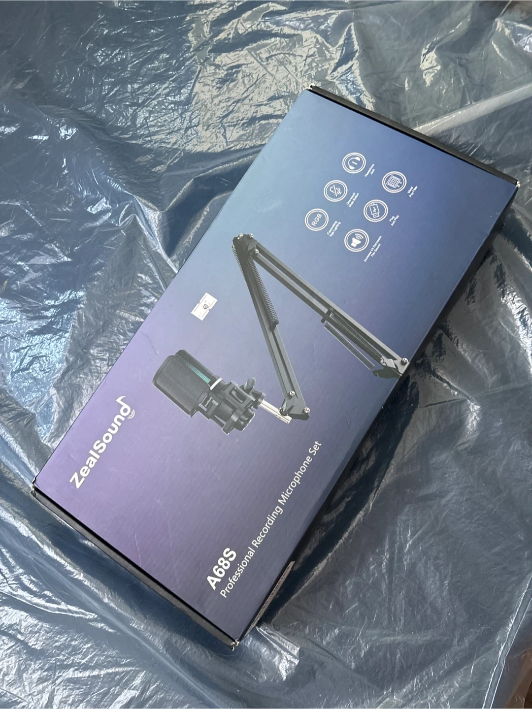 This is a ZealSound A68S professional recording microphone set. It includes the microphone, an adjustable boom stand, and necessary cables. It's ready for your next recording project!