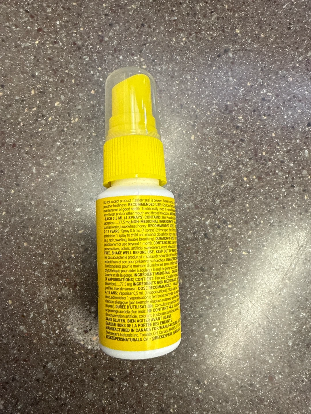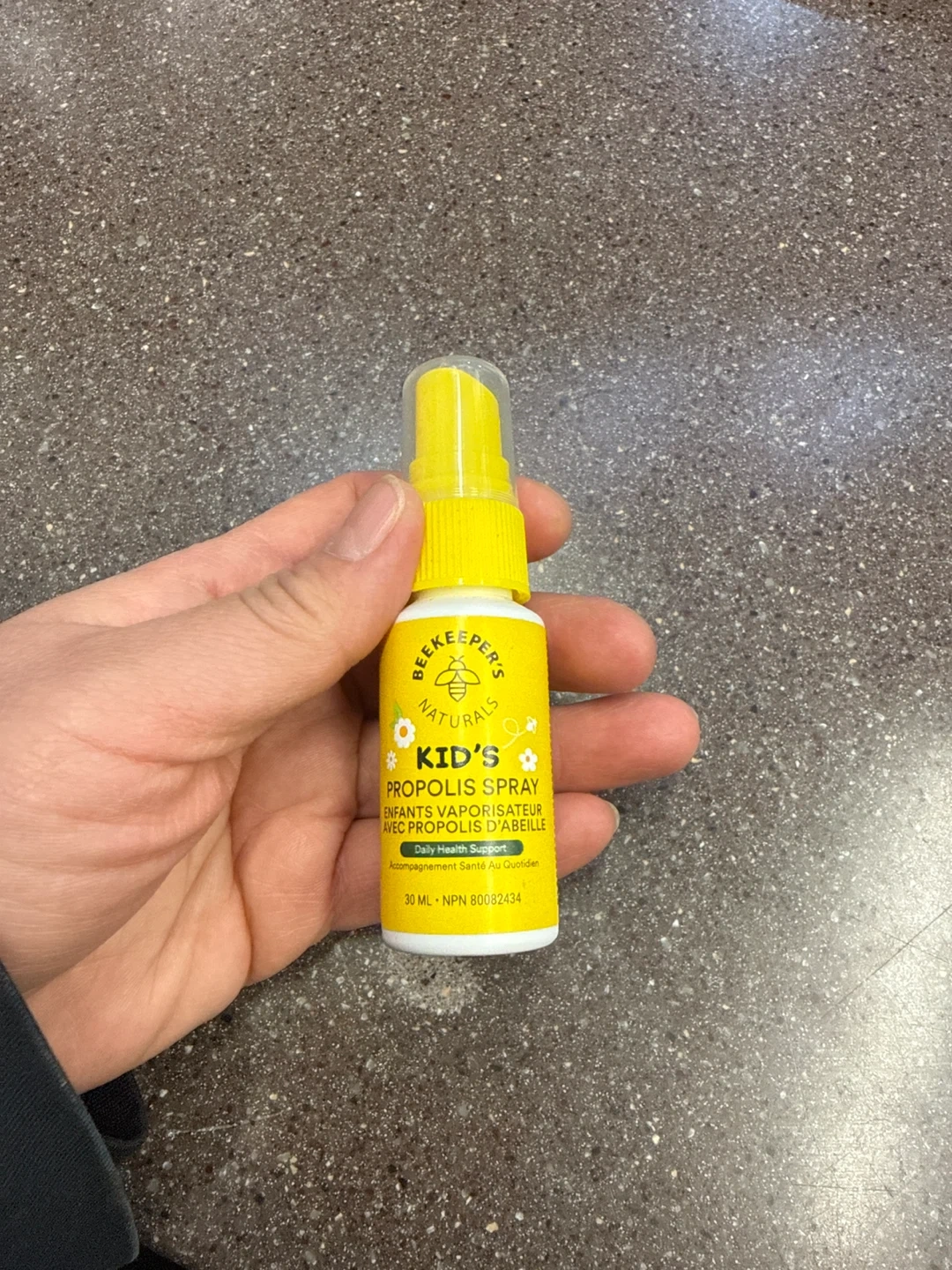 This is Beekeeper's Naturals Kid's Propolis Spray. It's a daily health spray for kids. Contains 30 ml. Recommended for ages 2 years and up.