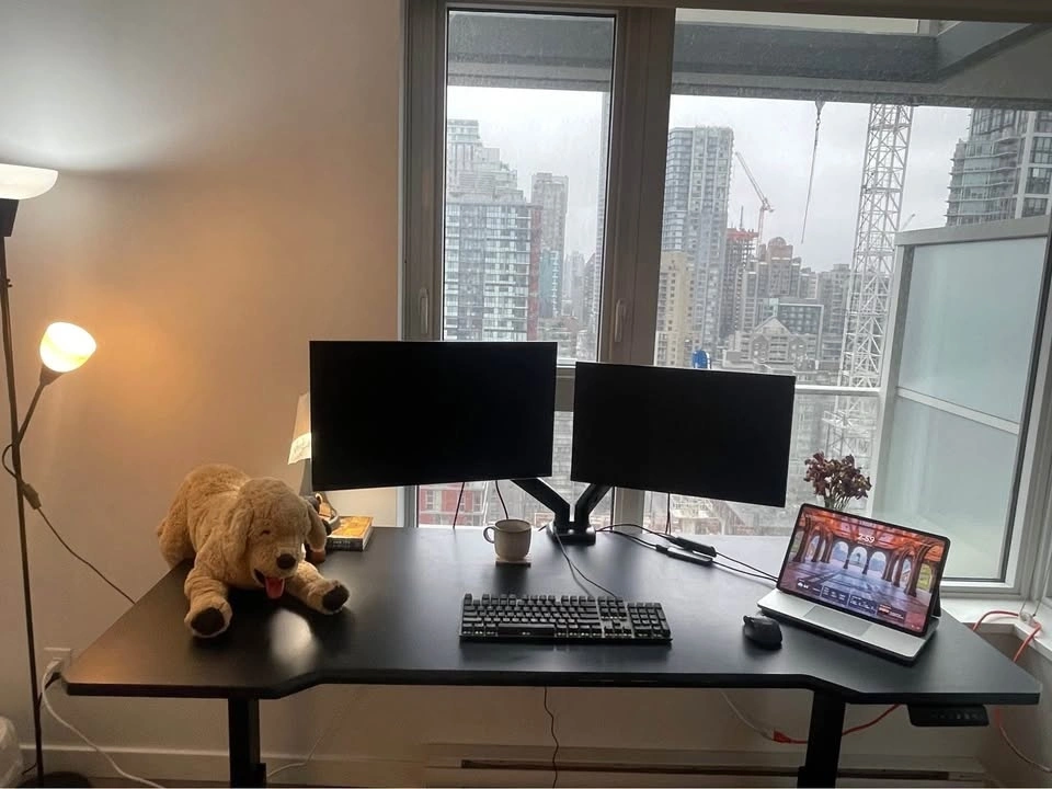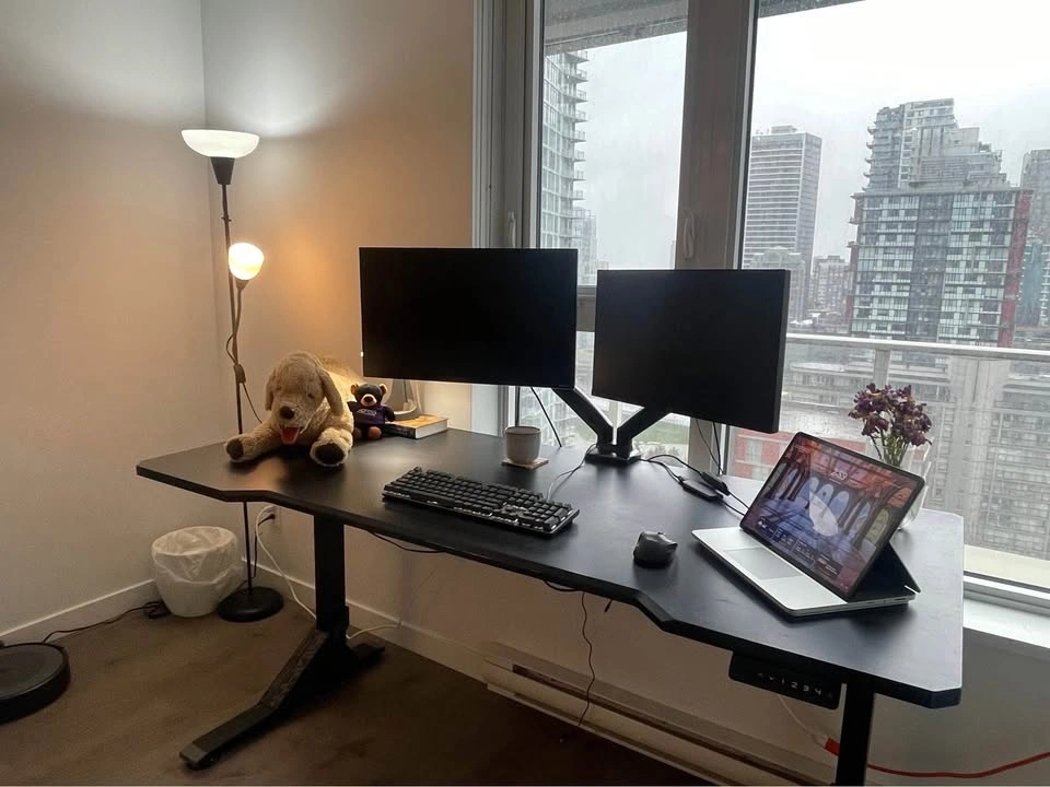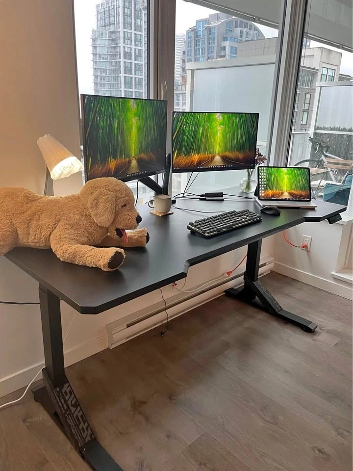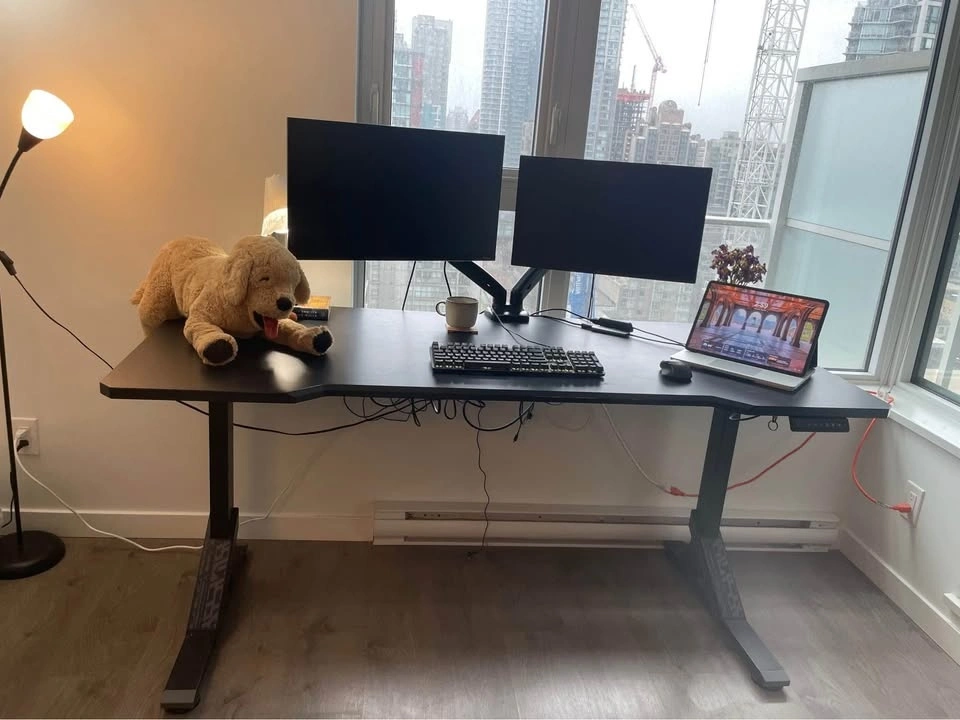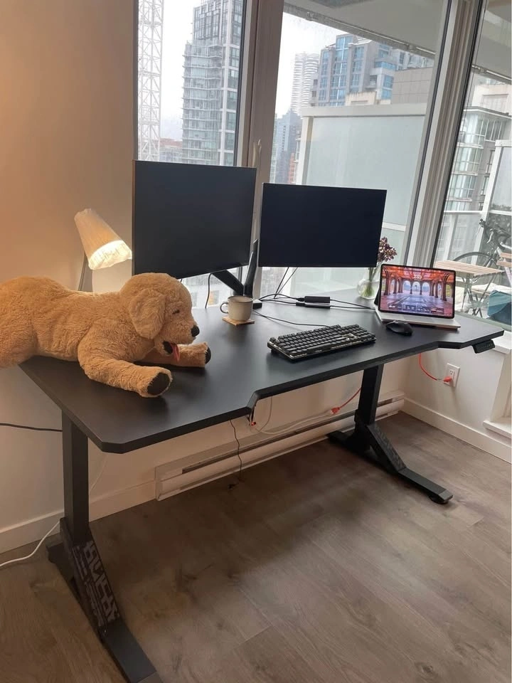 Selling my Ikea UPPSPEL gaming desk. Large and sturdy desk with electric height adjustment and memory presets. Perfect for multi monitor setups, gaming or a home office. Clean, modern design and in perfect condition. I am selling it because I’m moving and it is big for my new place. Dimensions: 180 cm x 800 cm.