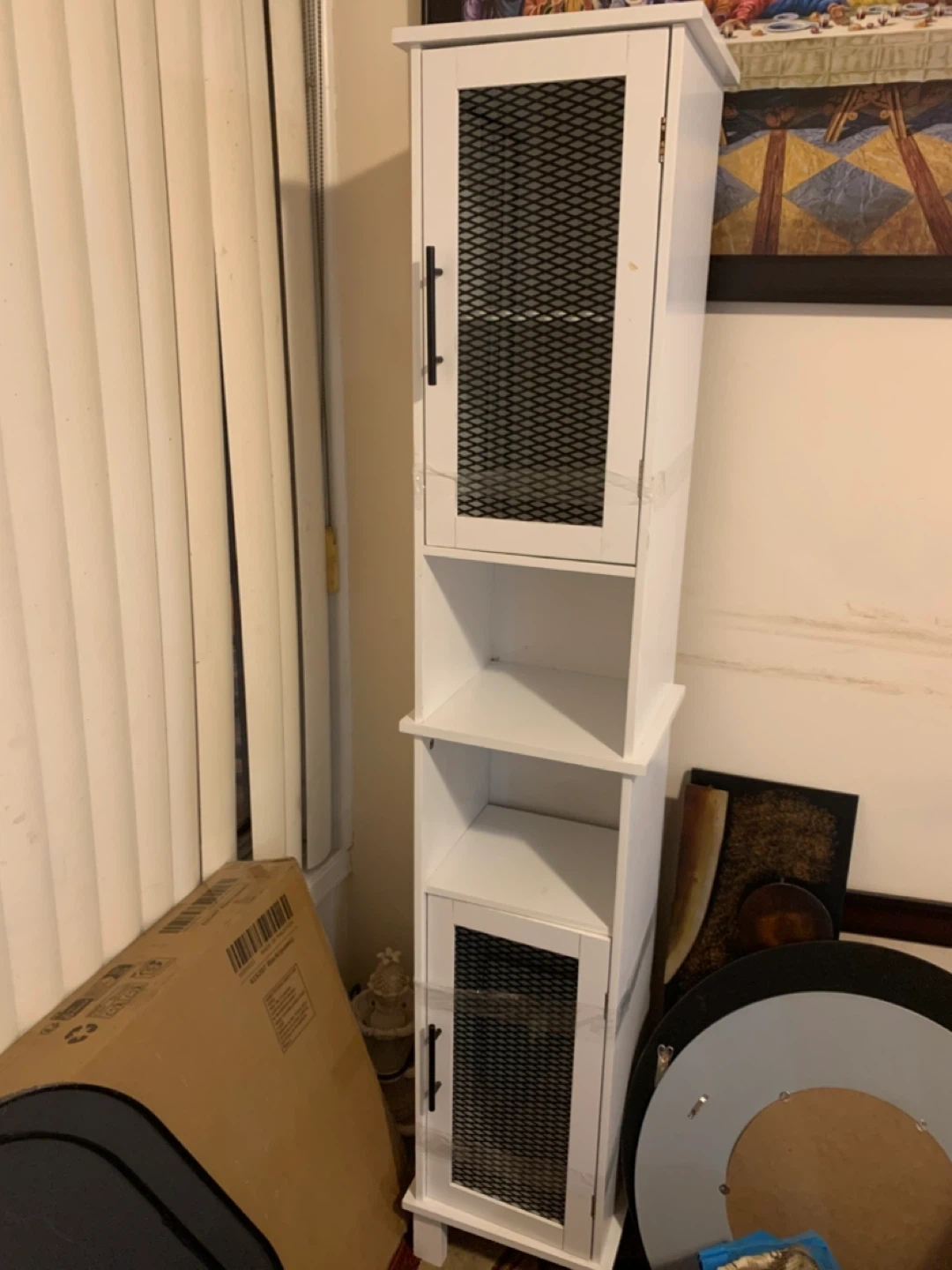 Tall White Storage bathroom cabinet Cabinet with Mesh Doors