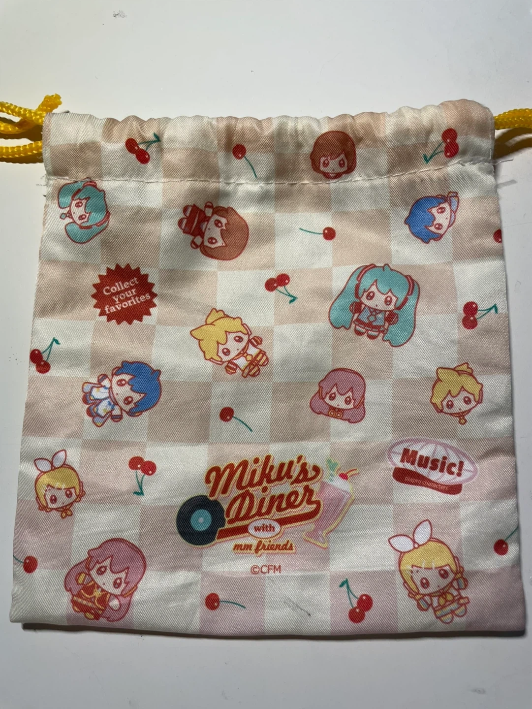Small pouch (a bit larger than 5x5 inches) with a design of the main 6 vocaloids.