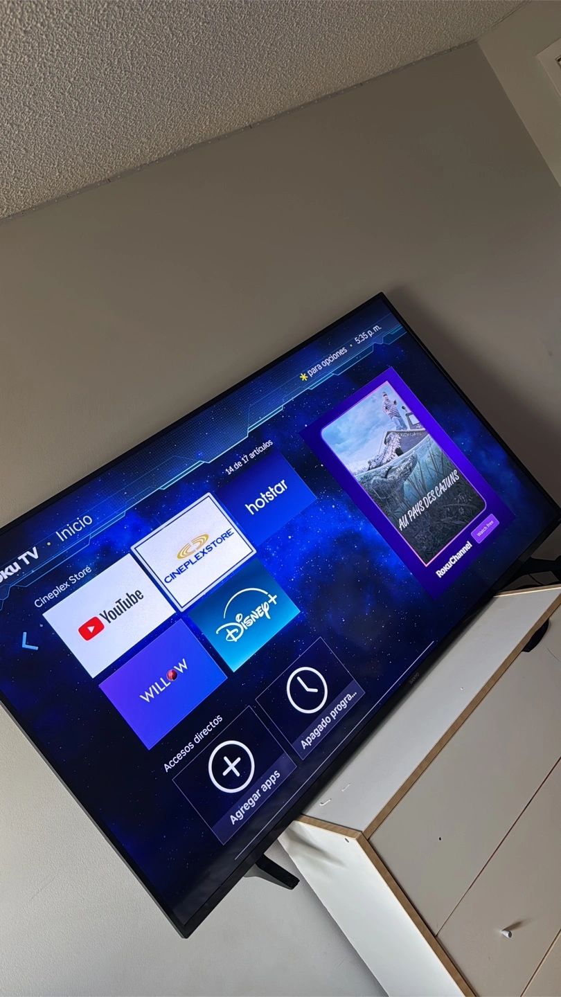 Smart TV with access to various streaming services like YouTube, Disney+, Cineplex Store, and more. Features a user-friendly interface. Includes access to Hotstar and Willow.