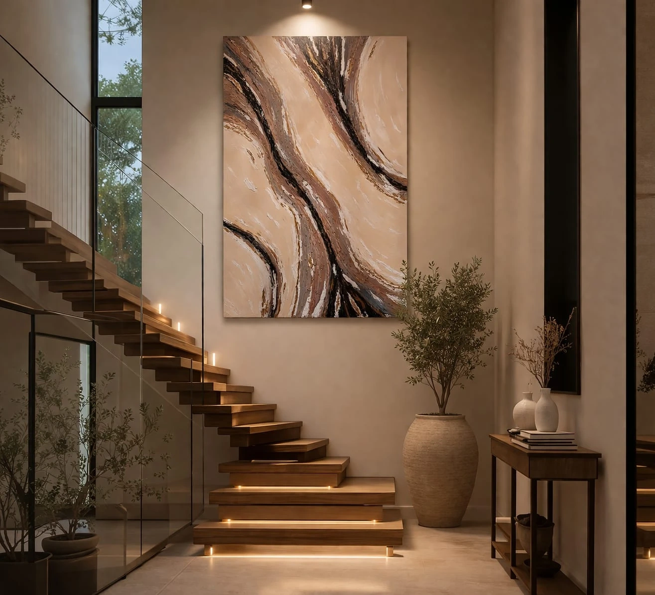 • Neutral luxury tones – beige, cream, brown, gold accents