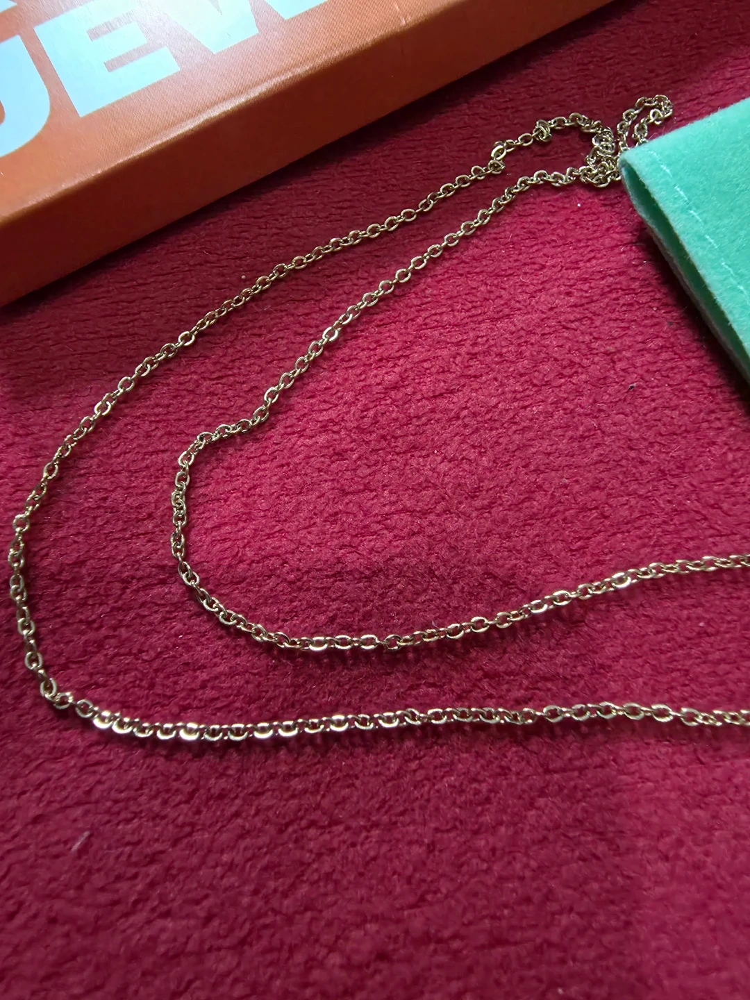 Fine chain made of stainless steel coated with 14K gold PVD. Durable, waterproof and would never rust. Made to wear daily with zero fade. Choker length. Original price $58.