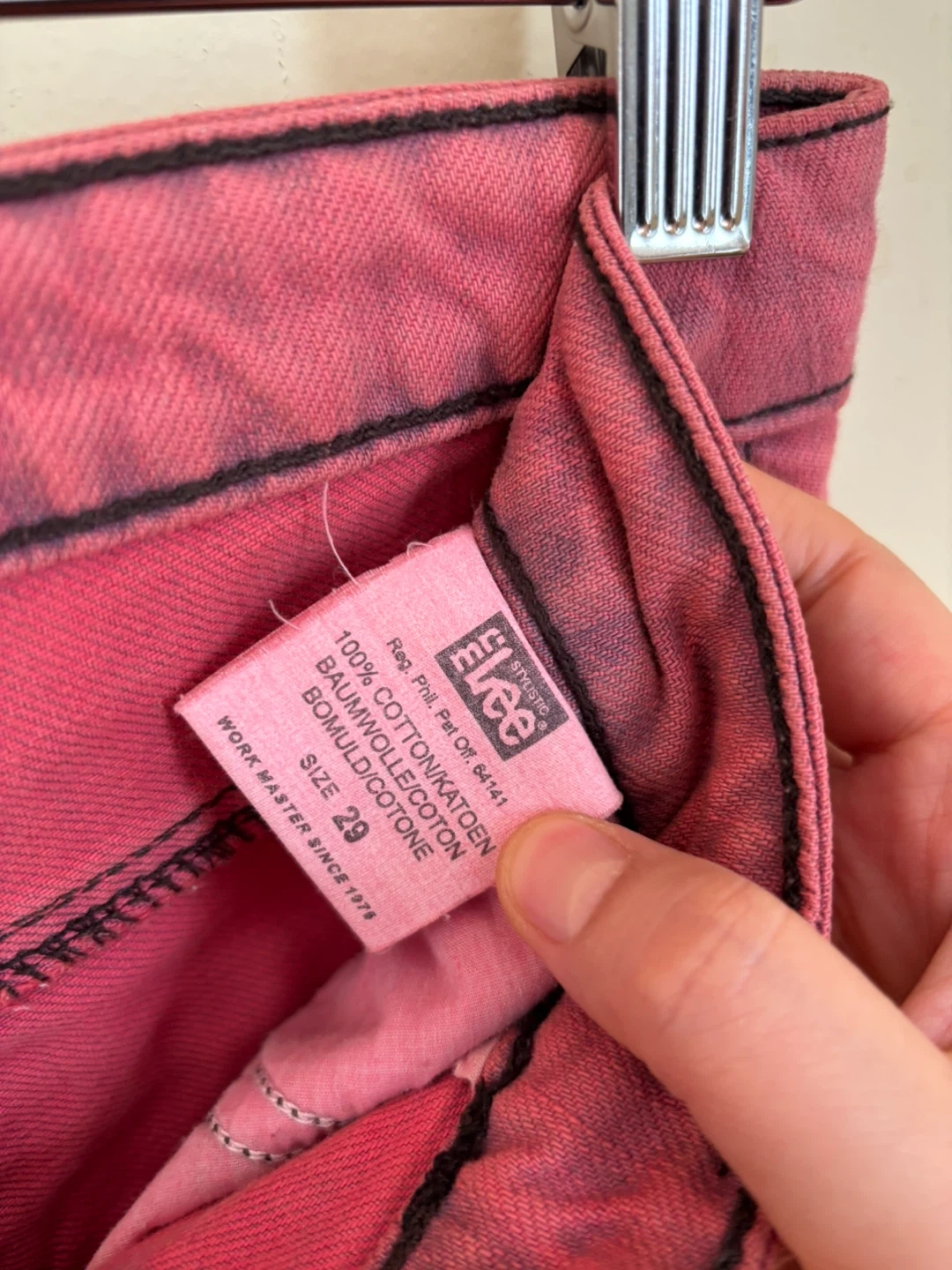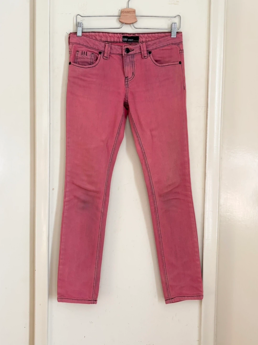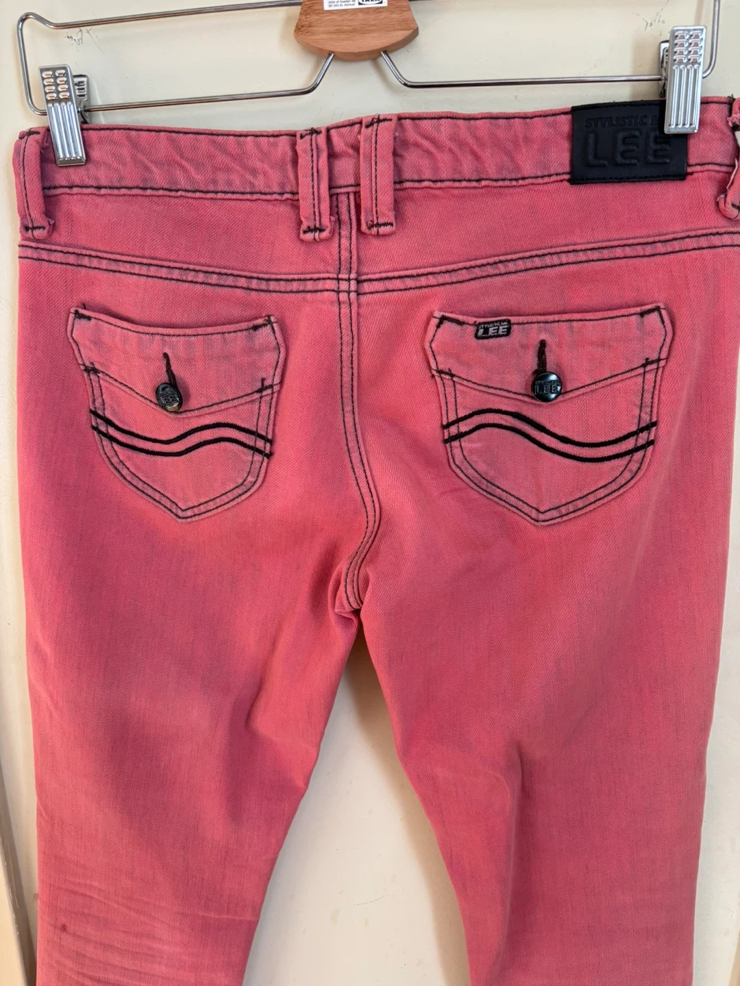 Selling a pair of Lee jeans in a unique pink colour! They're size 29 and made from 100% cotton, making them super comfy. These jeans have a stylish design with detailed stitching and back pocket accents. Perfect for adding a pop of colour to your wardrobe!