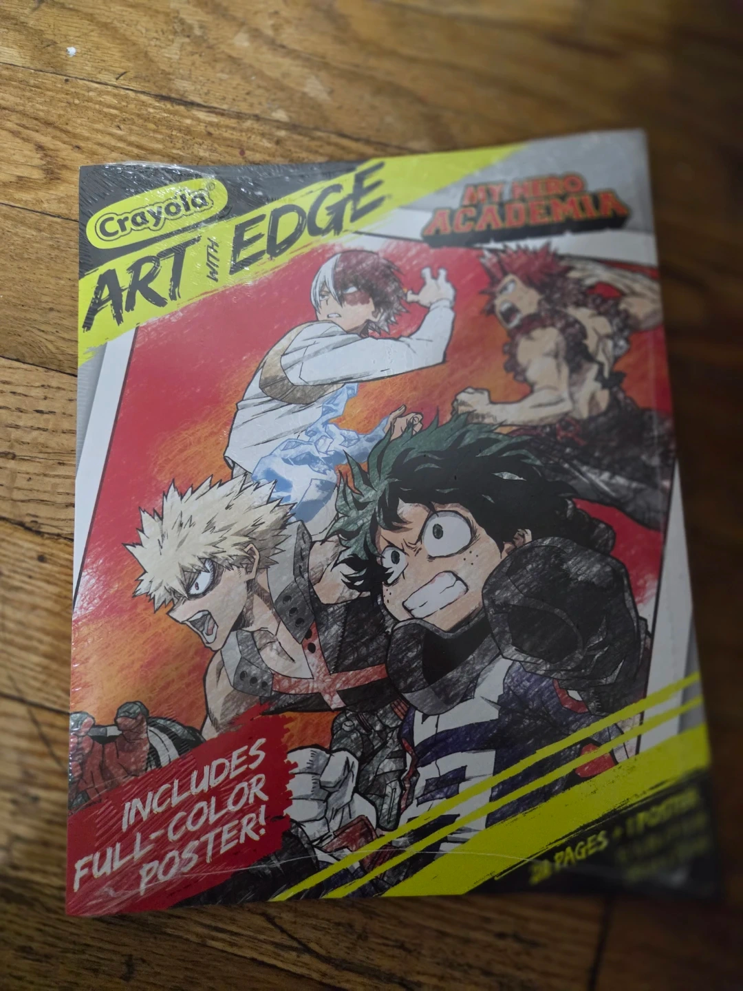 This Crayola Art With Edge coloring book features characters from the My Hero Academia manga and anime series. It includes 28 coloring pages and a full-color poster. The book measures 15 3/4 x 9 3/4 inches.