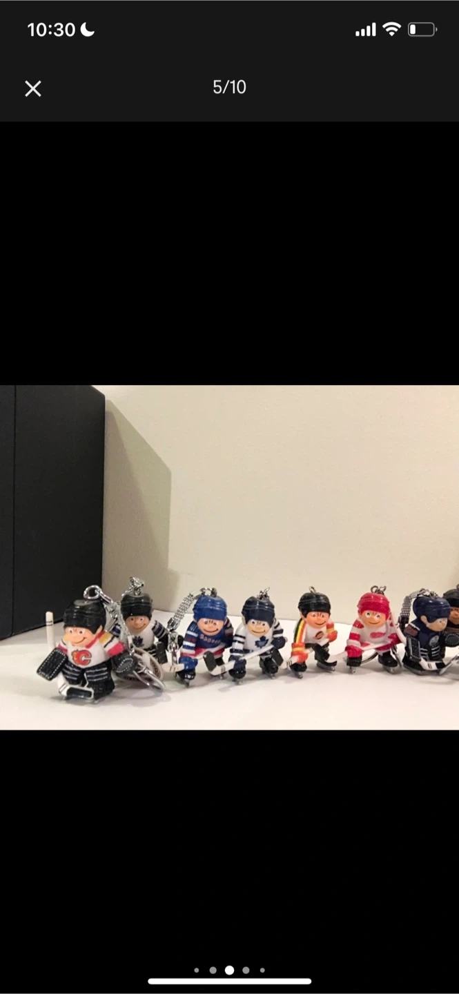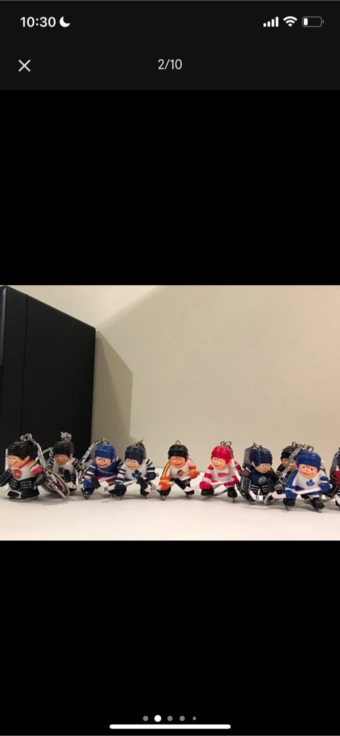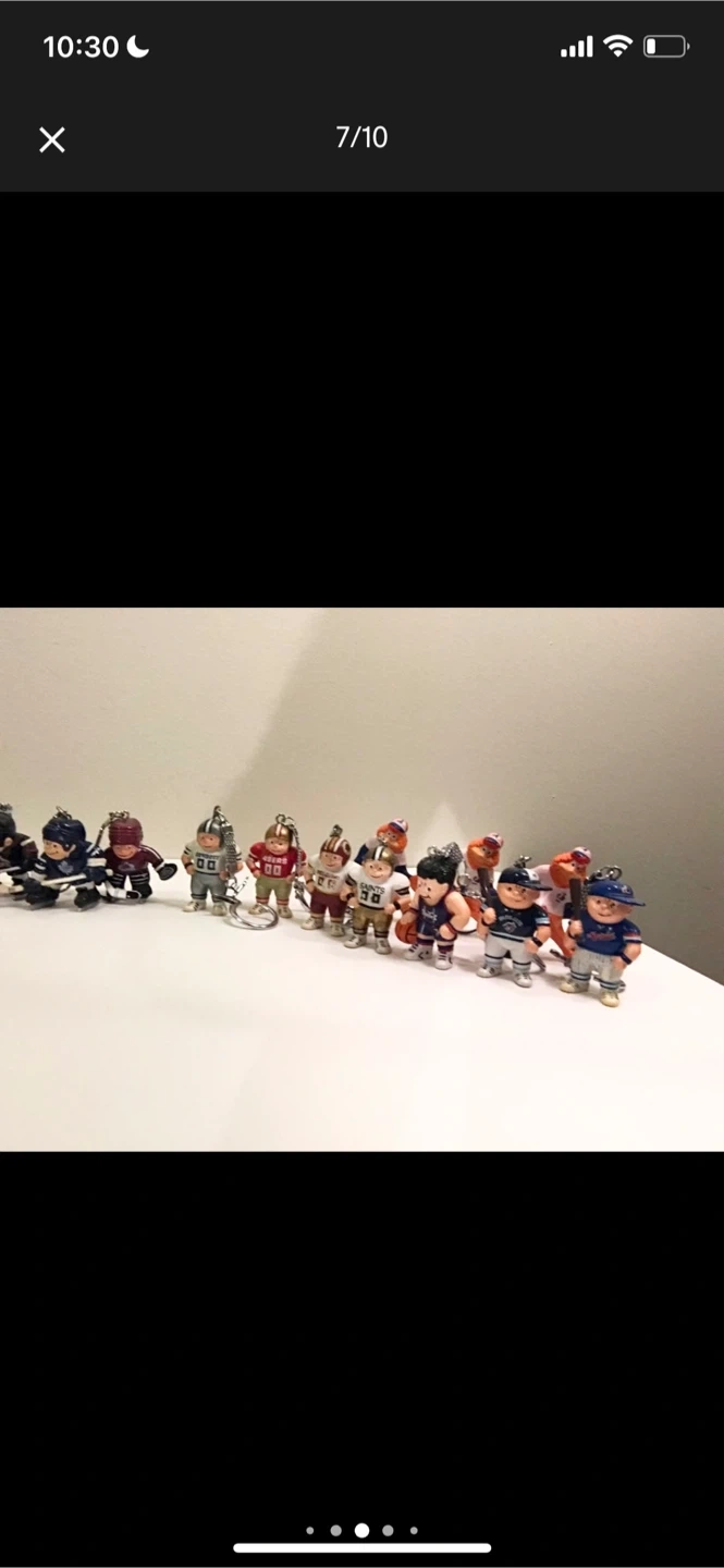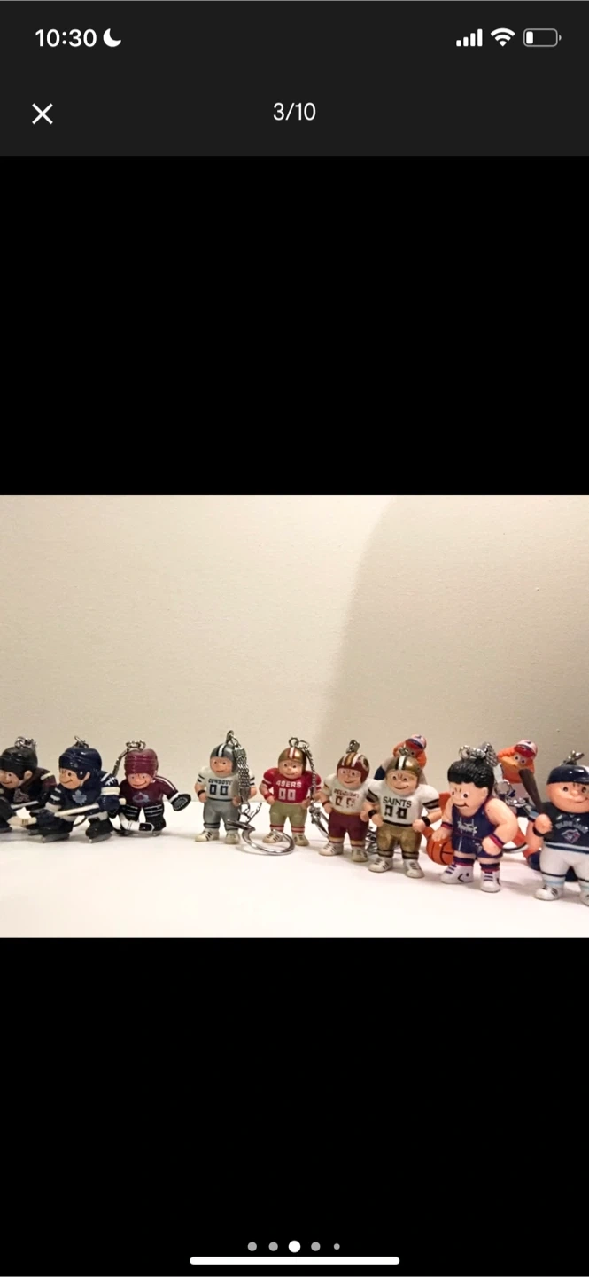 This is a lot of 10 sports player keychains. It includes hockey players in various team jerseys, football players, and baseball players. They're great for sports fans! 10$ each