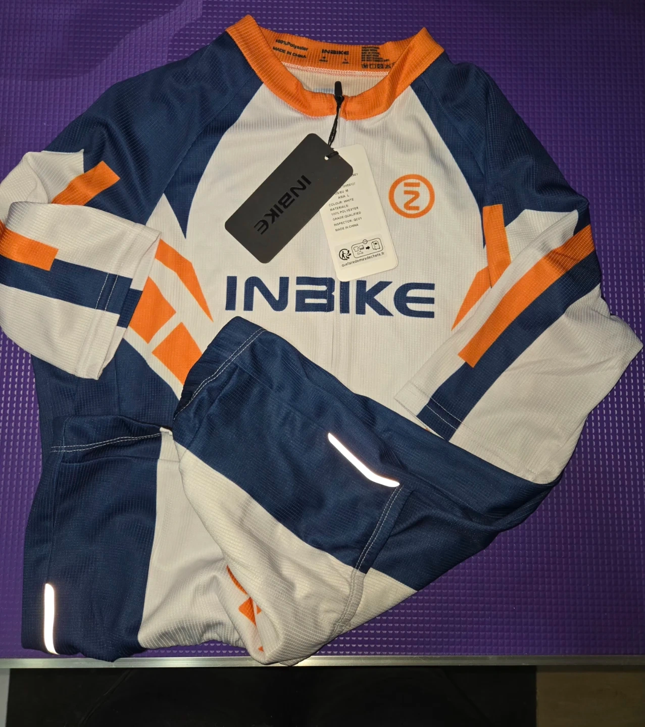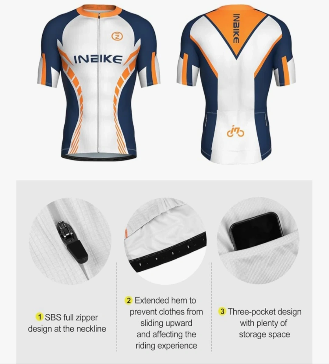 This INBIKE cycling jersey features a full SBS zipper and three rear pockets for convenient storage. It's made from 100% Polyester, a lightweight and breathable mesh fabric. The extended hem prevents it from sliding up while riding.