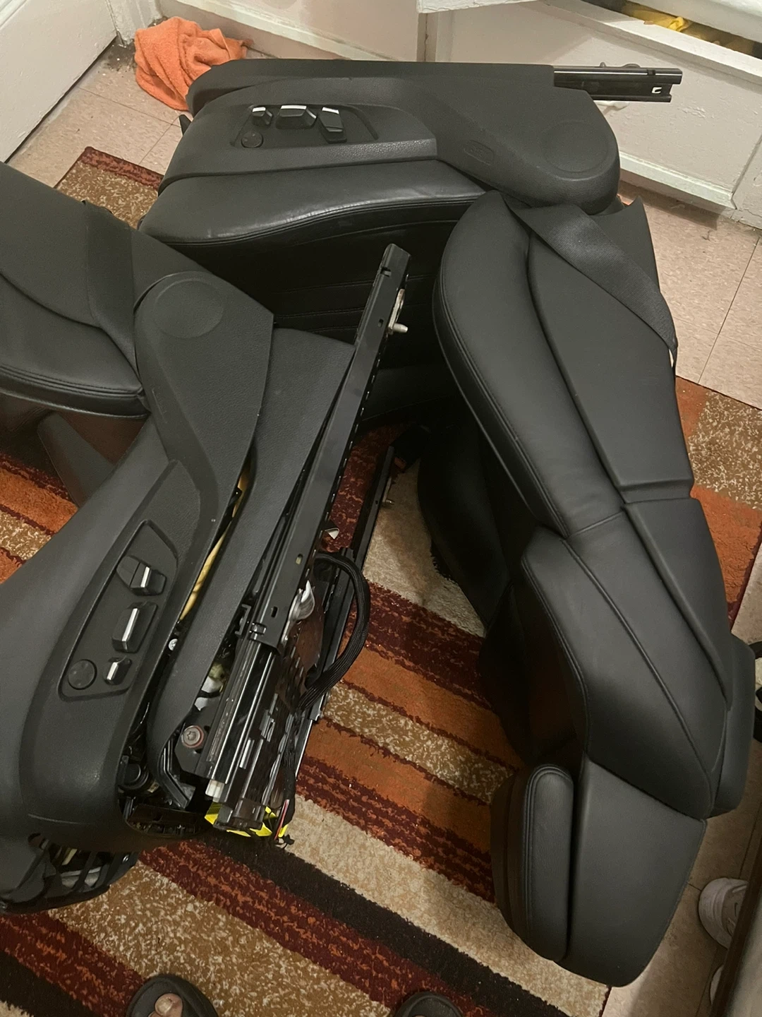 Selling a pair of black leather car seats, looks like they're from a BMW M5series. They're in good condition and ready to be installed in your car!only cash 💰