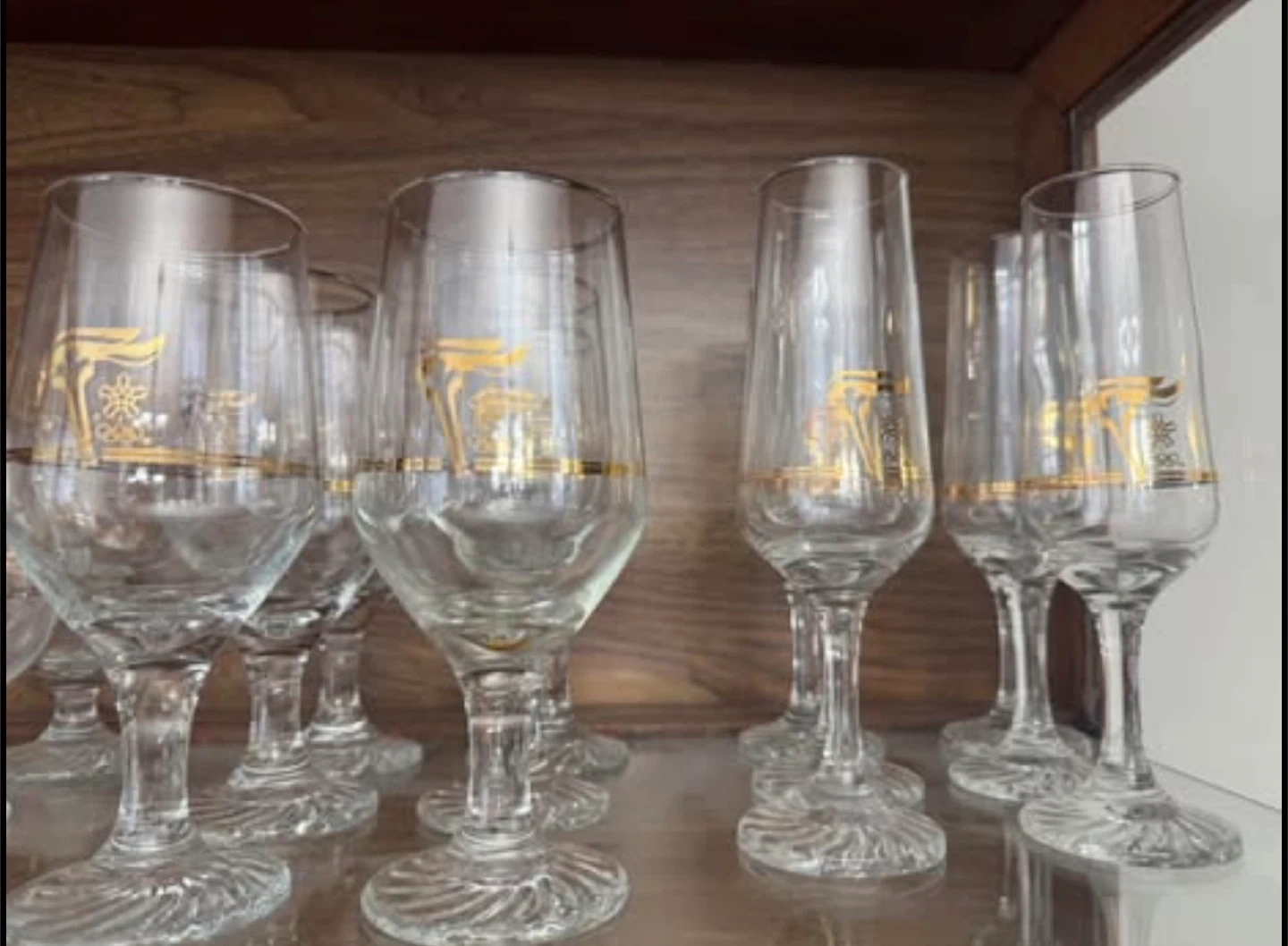28 piece vintage collectible glasses from 1988 Calgary Olympics. Includes: 7 champagne, 7 Pilsner, 6 cognac, 6 cocktail, 2 beer. From a smoke-free and pet-free home.