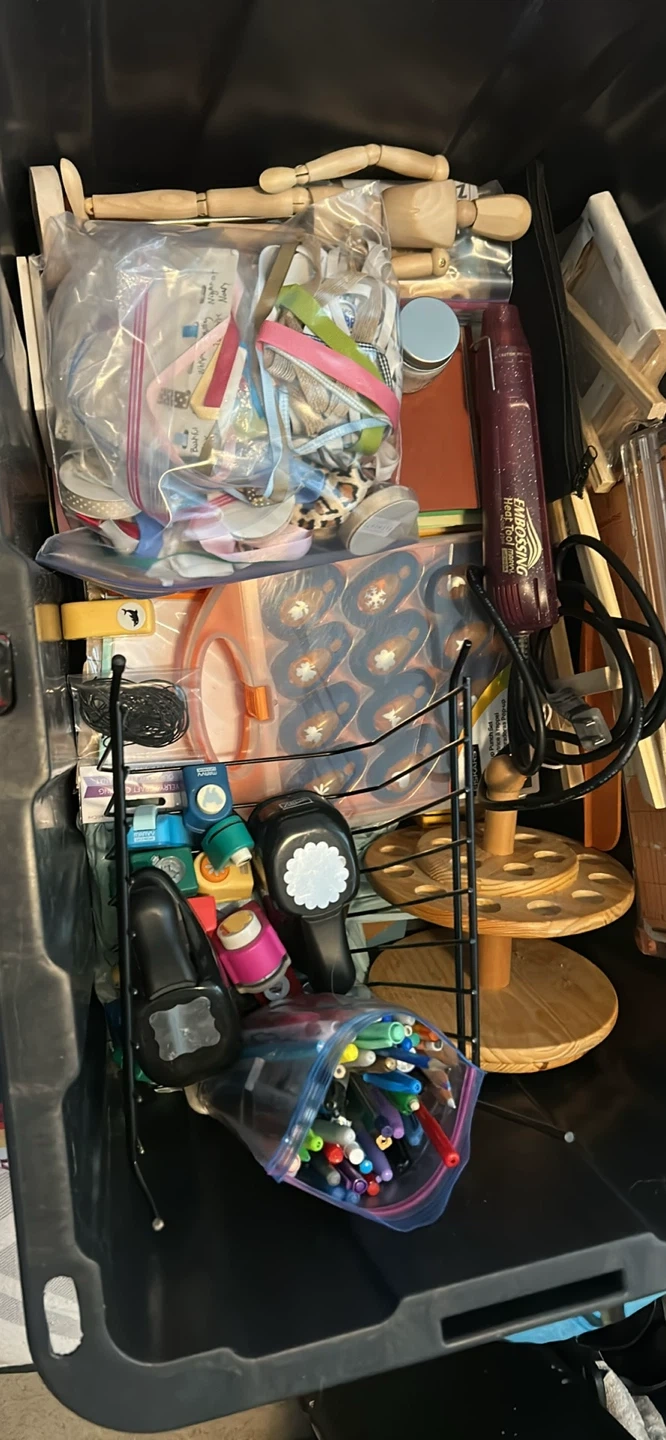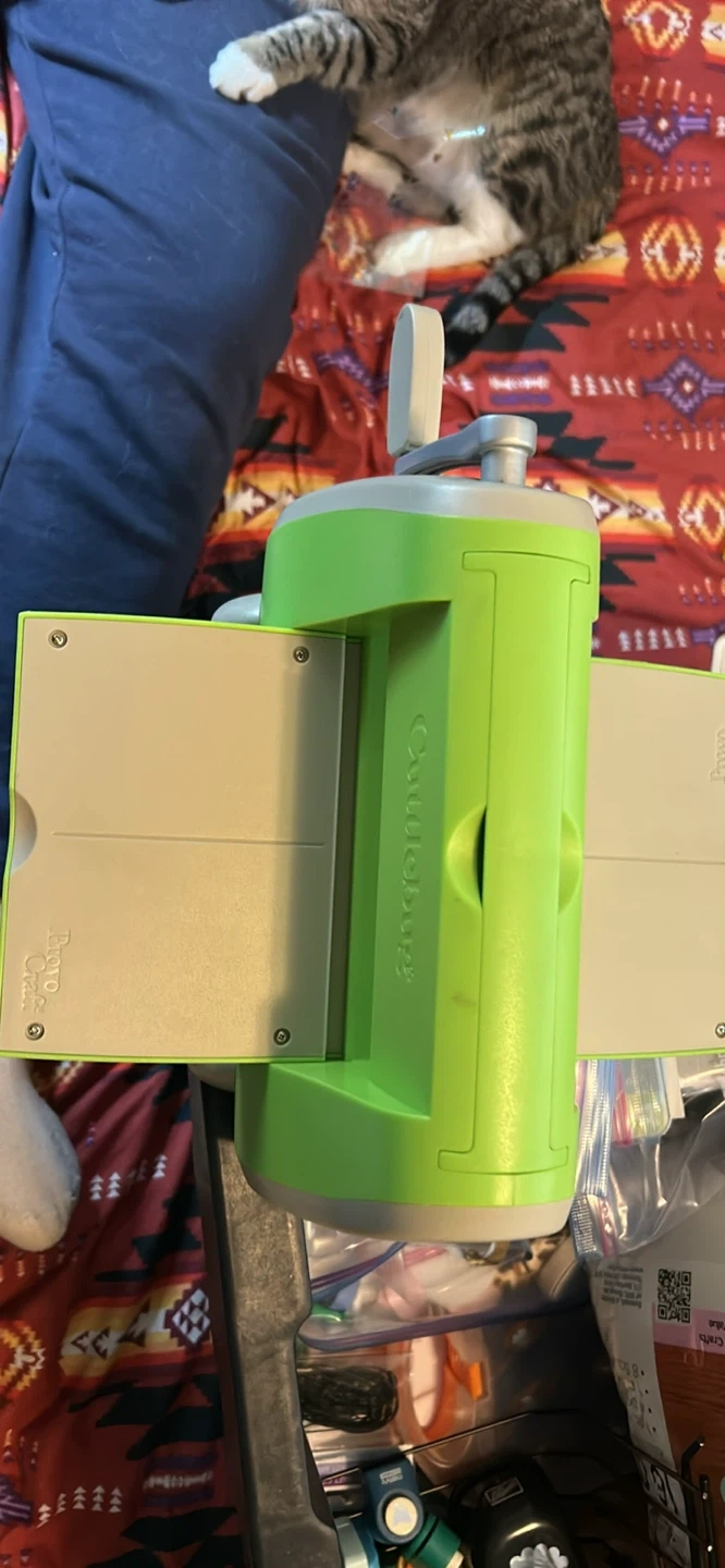 Includes a Cuttlebug die-cutting and embossing machine with accessories. A large bin of various cardstock papers and stamps are also included. Great for all your scrapbooking and card-making projects!