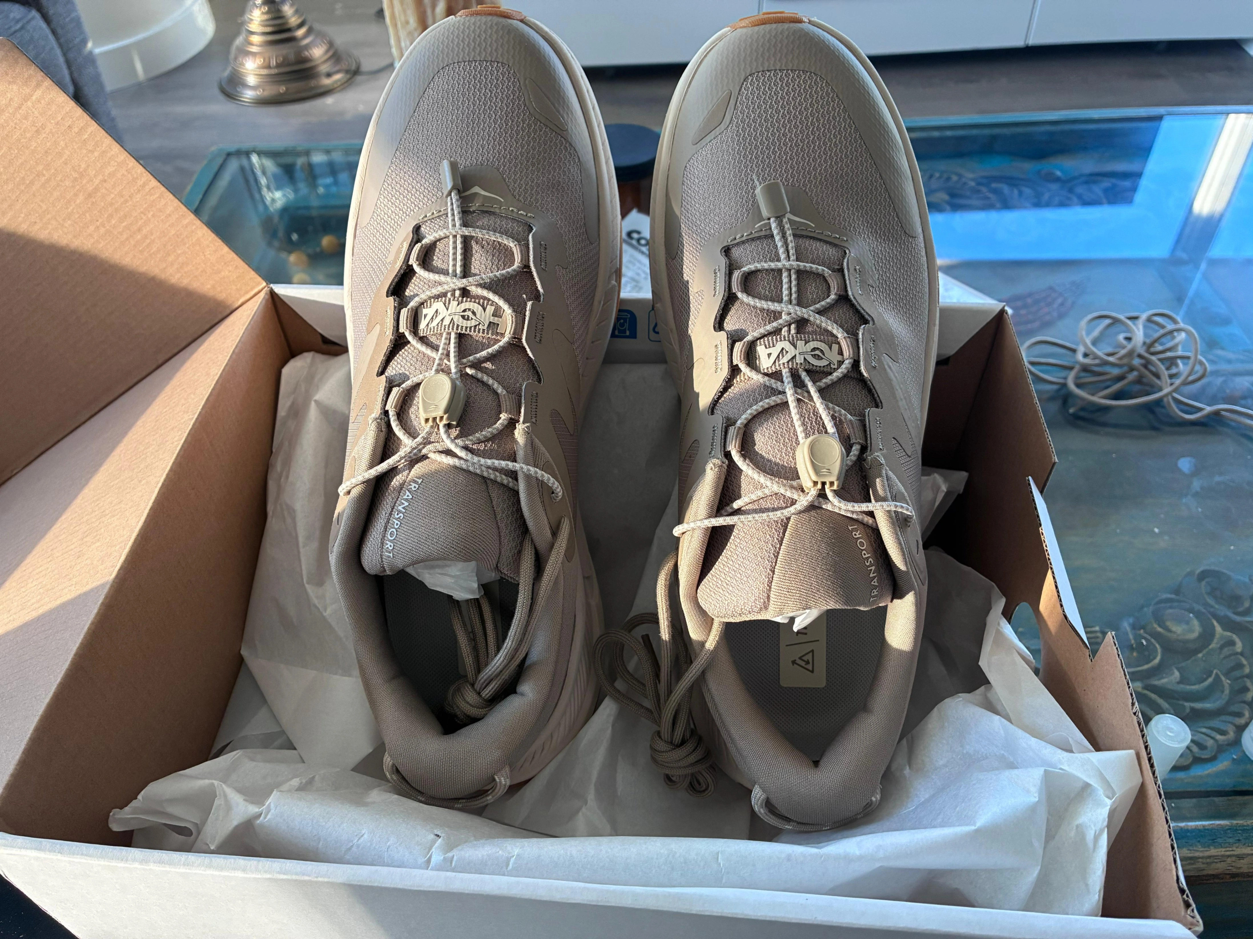 Selling a brand new pair of Hoka M Transport shoes in the Tan/Havane colour! They are a size 8D and come in the original box. These shoes are super comfy and ready for anything!