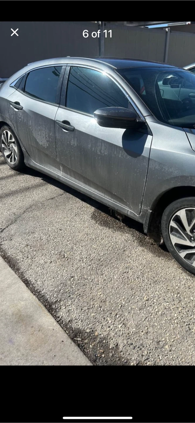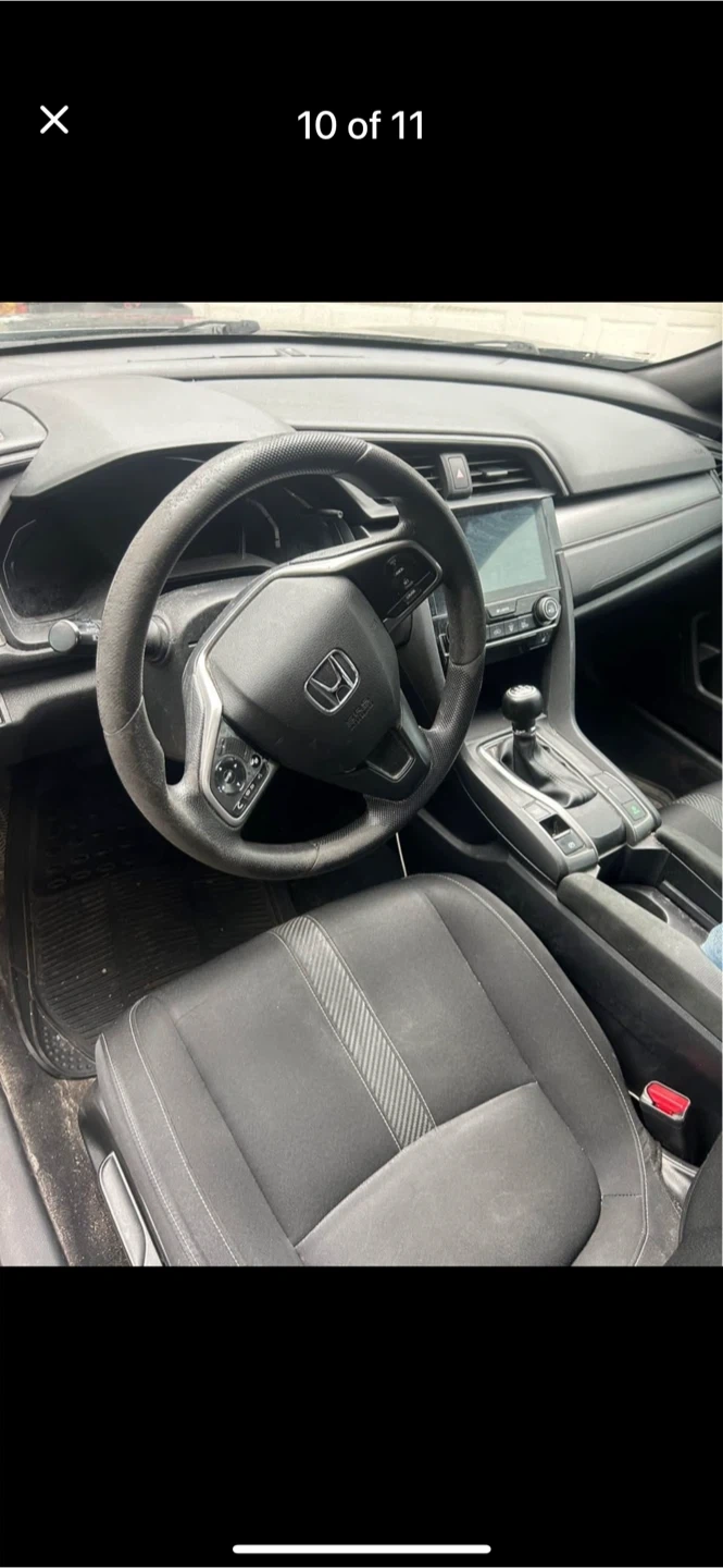 Grey ACTIVE Honda Civic sedan with black interior I has 329,000 kms Seats are fabric. It has a touchscreen infotainment system back up camera, New windshield, back and front new pads and rotors, 4 new all reason tires, just had an oil change, and it’s has a 6 speed manual transmission.needs right side staring knuckle arm bearing or maybe assembly Amazon is seeking for $300 of wrecking yard for $100 car runs and drive strong. This car offers comfortable seating for passengers.