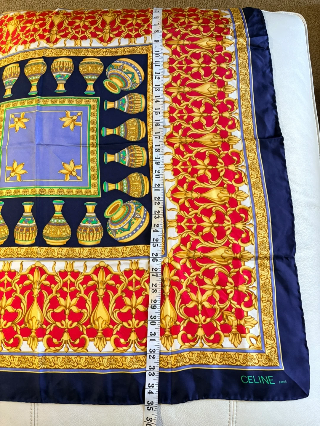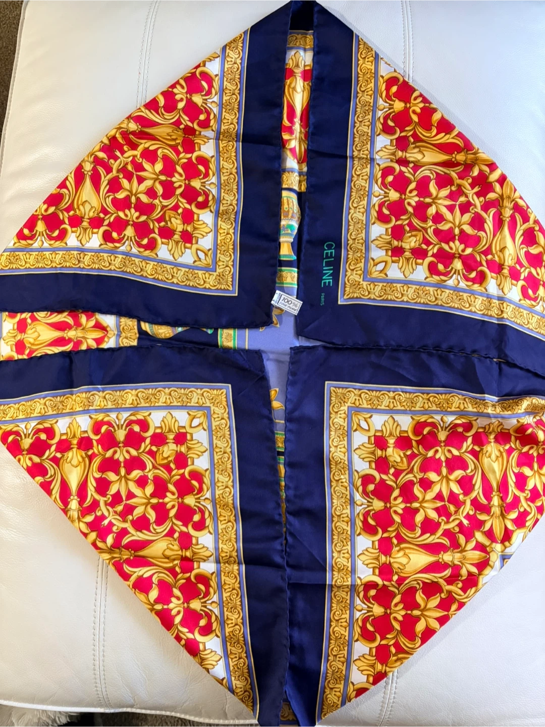 No box. Beautiful Celine Paris scarf up for grabs! It's made of 100% pure silk and has a lovely design. Perfect for adding a touch of elegance to any outfit