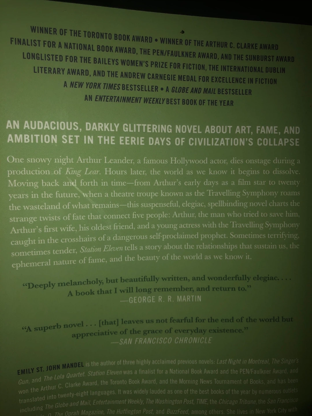 ππONLY $2!!πThis is the novel "Station Eleven" by Emily St. John Mandel. It's an international bestseller and a Toronto Book Award winner. The book explores themes of civilization and art in a post-apocalyptic world. It won the 2015 Toronto Book Award.