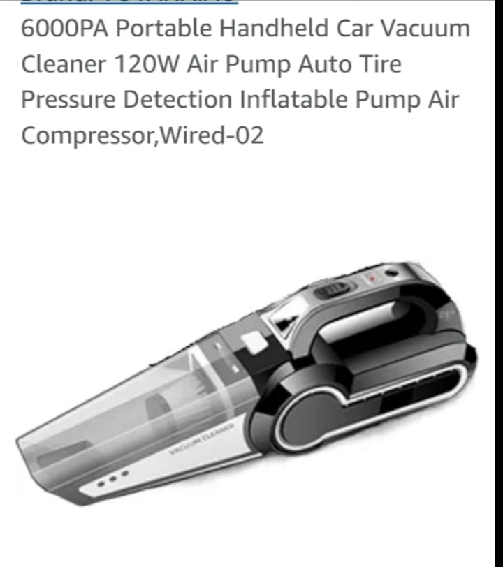 I am selling a handheld vacuum cleaner. Air pump function as well. The vacuum has a black and grey design. It also includes a charging cable. This is a great item to have on hand to keep your car clean.