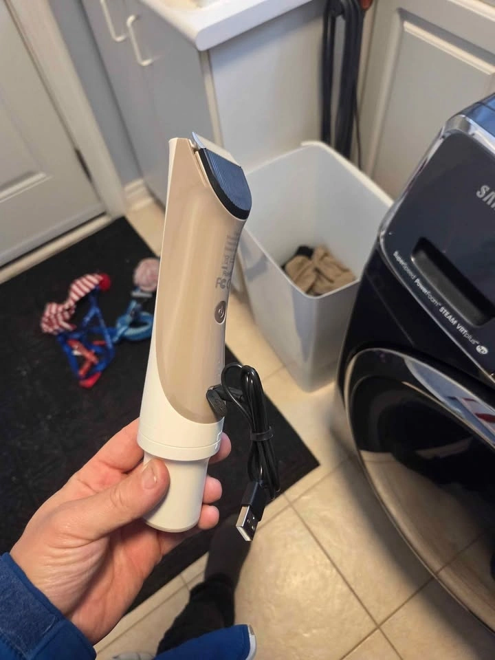 This is the Redroad P17 dog grooming tool with 400W power and 6-in-1 functionality. It has three speed settings for pet grooming.