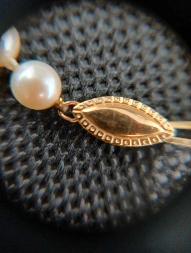 83My mother is a retired jeweler, and she's having me sell off some of her pieces she no longer wears. The above retails for $300; the $100 is firm. The properties are as follows: 3-3.5mm cultured pearl necklace, 16", 14k clasp.