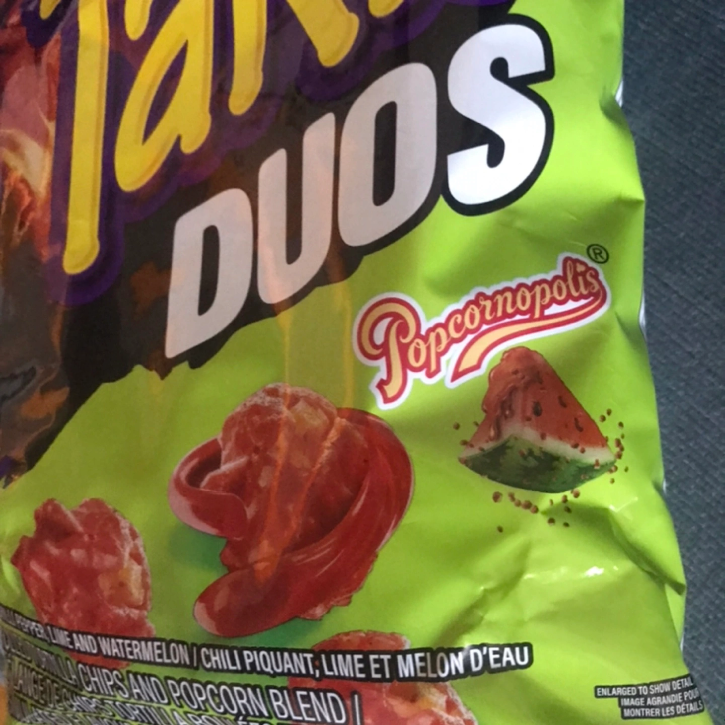 1000+3 Bags x 198g each. Takis Fuego and Popcornopolis chili and watermelon: Ignite your tastebuds with the sweet and spicy duo. Very Spicy! Ideal for serving in large bowls, this sharing size bag is loaded with enough intensity to satisfy everyone around you. Intense crunchy combination of rolled corn tortilla chips and caramelized popcorn, a mouthwatering experience!