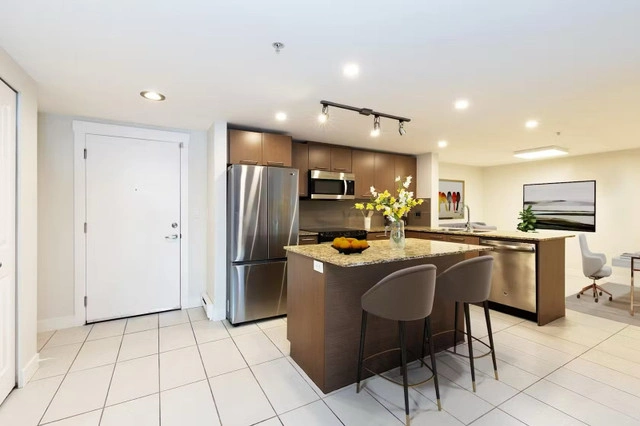 15Ground-floor unit by Gateway Skytrain with a private gated entrance. It features 2 bedrooms, 2 full baths, and an oversized den that can be used as a 3rd bedroom or office. Pet friendly with a deposit. Ready to move in! Located in Surrey Downtown, you can walk to everything! The unit is 1,109 sq ft with a 307 sq ft patio. Features include an open-concept layout with laminate floors, an electric fireplace, and large windows. The kitchen has stainless steel appliances, quartz countertops, and plenty of cabinets. In-suite laundry with full-size washer/dryer. Building amenities include a fitness center, hot tub, steam room, and clubhouse. Walking distance to amenities like banks, drug stores, salons, and medical clinics. 2-min walk to Gateway SkyTrain Station, Chuck Bailey Recreation Centre & Whalley Athletic Park. Quick access to Highway 1, Patullo bridge, Port Mann Bridge, and Alex Fraser Bridge. 5 minutes drive to Surrey Central Mall. Looking for families, professionals, or academics seeking urban convenience with ground-floor access and a private gate. Rent is $2,800/month; 1 year lease minimum Required: Tenant insurance, credit check, and damage deposit required (additional for pets), credit check, income proof, move in/out fee, No subleasing, smoking, or drugs. If interested, please message: 1) When you are ready to move in, 2) Who you will be living with, 3) What work you and other members do for a living, 4) Why you are a good fit for this place. ***Serious Inquiries Only