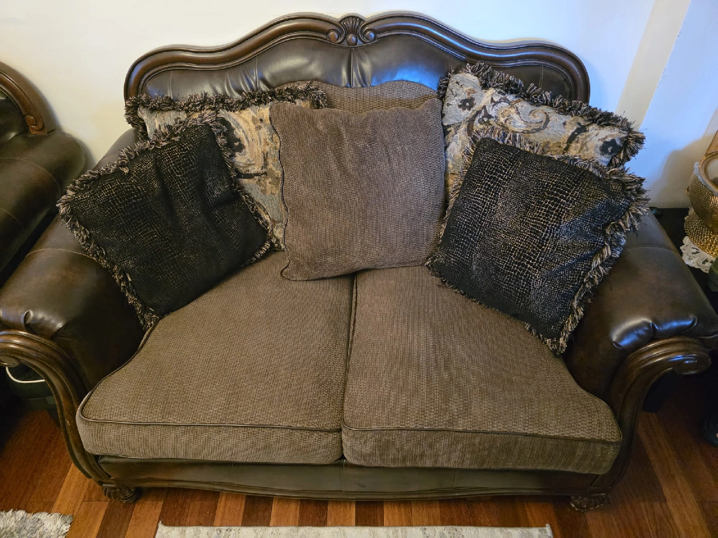 Selling a comfy brown sofa that comes with the pillows shown in the pictures. It's in good condition and ready for a new home! Perfect for a living room or den.