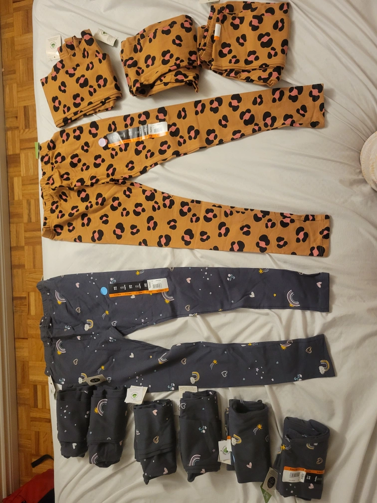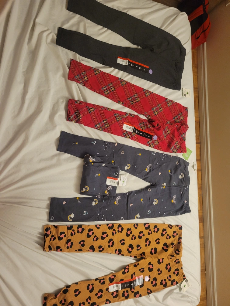 1000+$5 each 3 for $10 All 16pc for $50 girls leggings in various colours and patterns. Includes sizes S/P and M