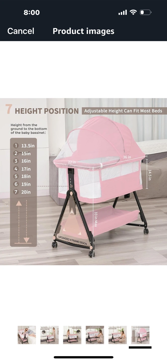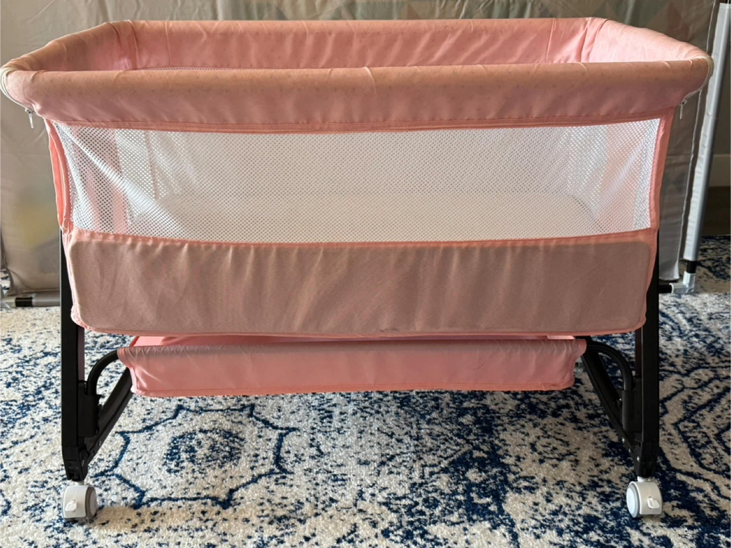 10Used 3 in 1 Baby Bassinet, Jestonten - Excellent Condition, Mississauga For sale: Gently used Jestonten 3-in-1 Baby Bassinet in Pink, perfect for newborns (0-6 months). This versatile bassinet is in excellent condition, looks almost like new, from a pet-free, smoke-free home. Originally purchased for $140 (before tax). Features: * 3 Modes: Use as a standalone bassinet, bedside sleeper (attaches to adult bed), or rocking bassinet. * 7 Height Adjustments (13-20 inches) to match your bed or sofa height. * Breathable Mesh Sides for air circulation and easy baby monitoring. * Sunshade Mosquito Net Canopy to protect from light and insects. * Large Storage Basket for diapers and baby essentials. * Easy to Fold and Carry, tool-free assembly, mattress size 33x19 inches. * Breastfeeding-Friendly with zip-down side for nighttime convenience. * Safety Certified: Meets USA CPSC baby safety standards. Cleaned and well-maintained, ready for your newborn! Pickup in Mississauga (near Clarkson Community Centre) Cash .Asking $95 OBO (or best offer). Message for more details! 905-510-2239