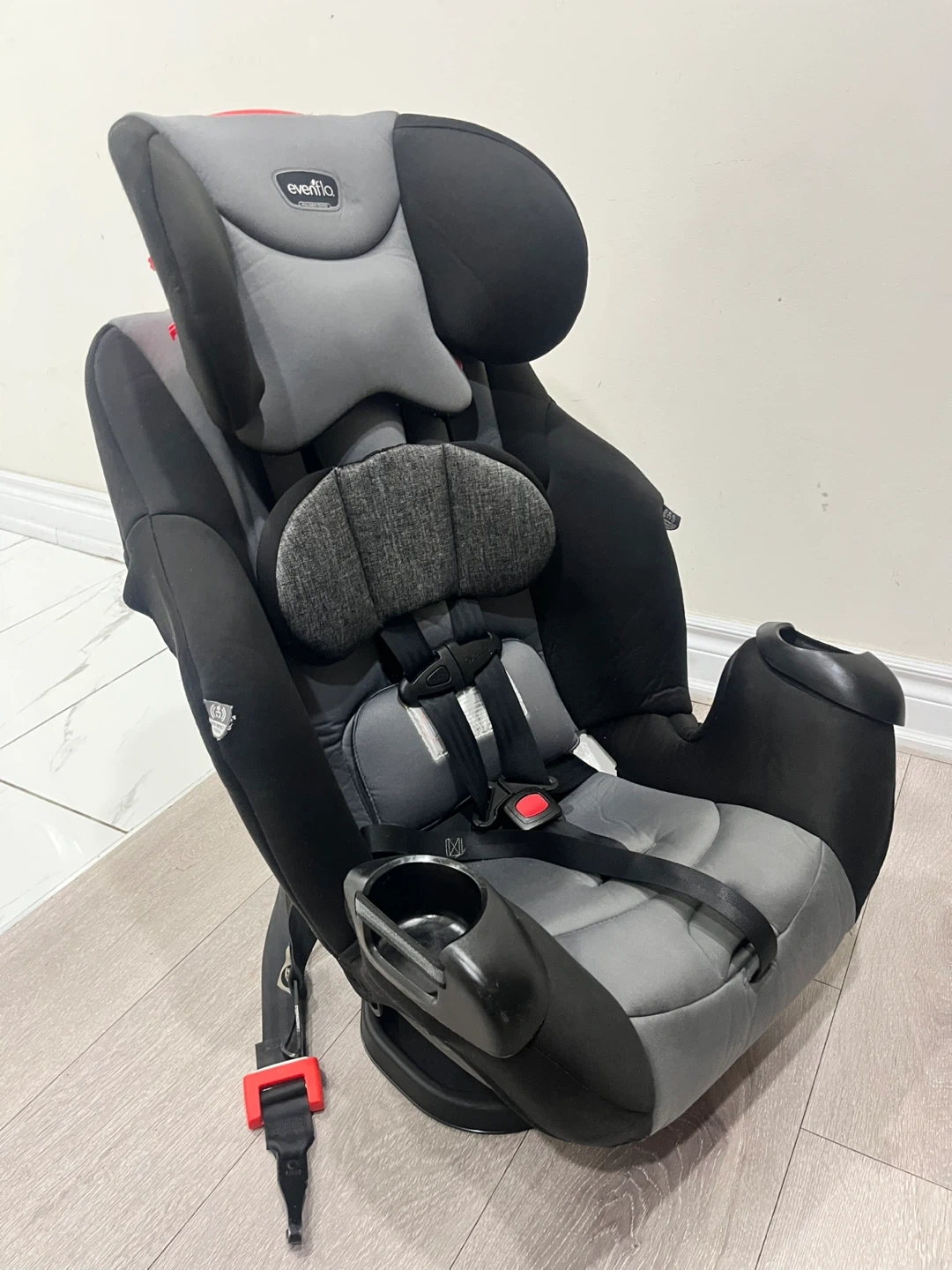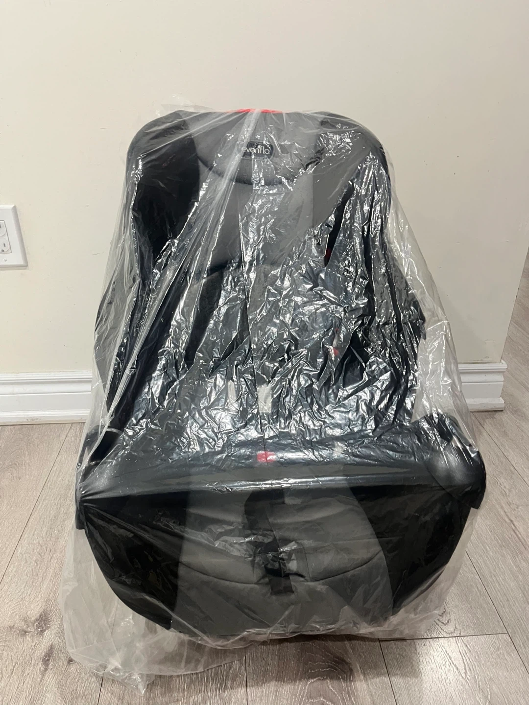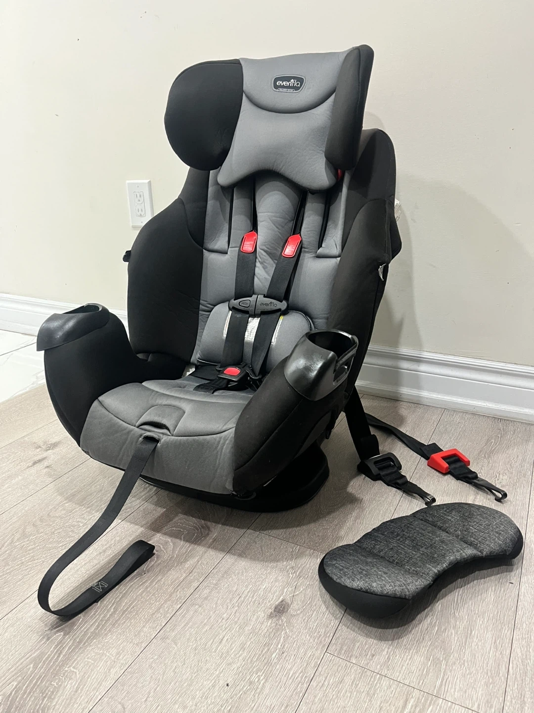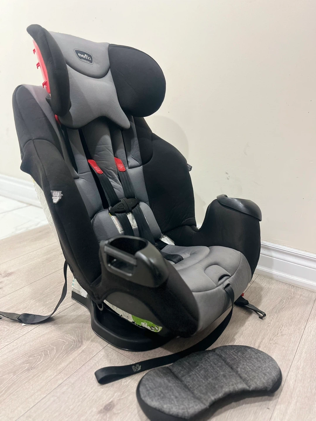 183Gently used Evenflo car seat in great condition! It comes in a sleek black and grey colour scheme and includes the infant insert. Ready for a new home to keep your little one safe and comfortable 3 in 1