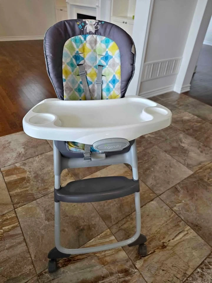 10This Ingenuity high chair is in good, used condition and ready for a new home. It's perfect for meal times and folds easily for storage. This high chair features a removable tray, adjustable height, and a comfortable seat pad. * Removable and Dishwasher-Safe Tray * Adjustable Height Positions * Folds for Easy Storage I have looked at similar listings and am pricing it to sell. It's a kitchen throne fit for your little one. Pickup only in Aurora (bayview and st johns sideroad