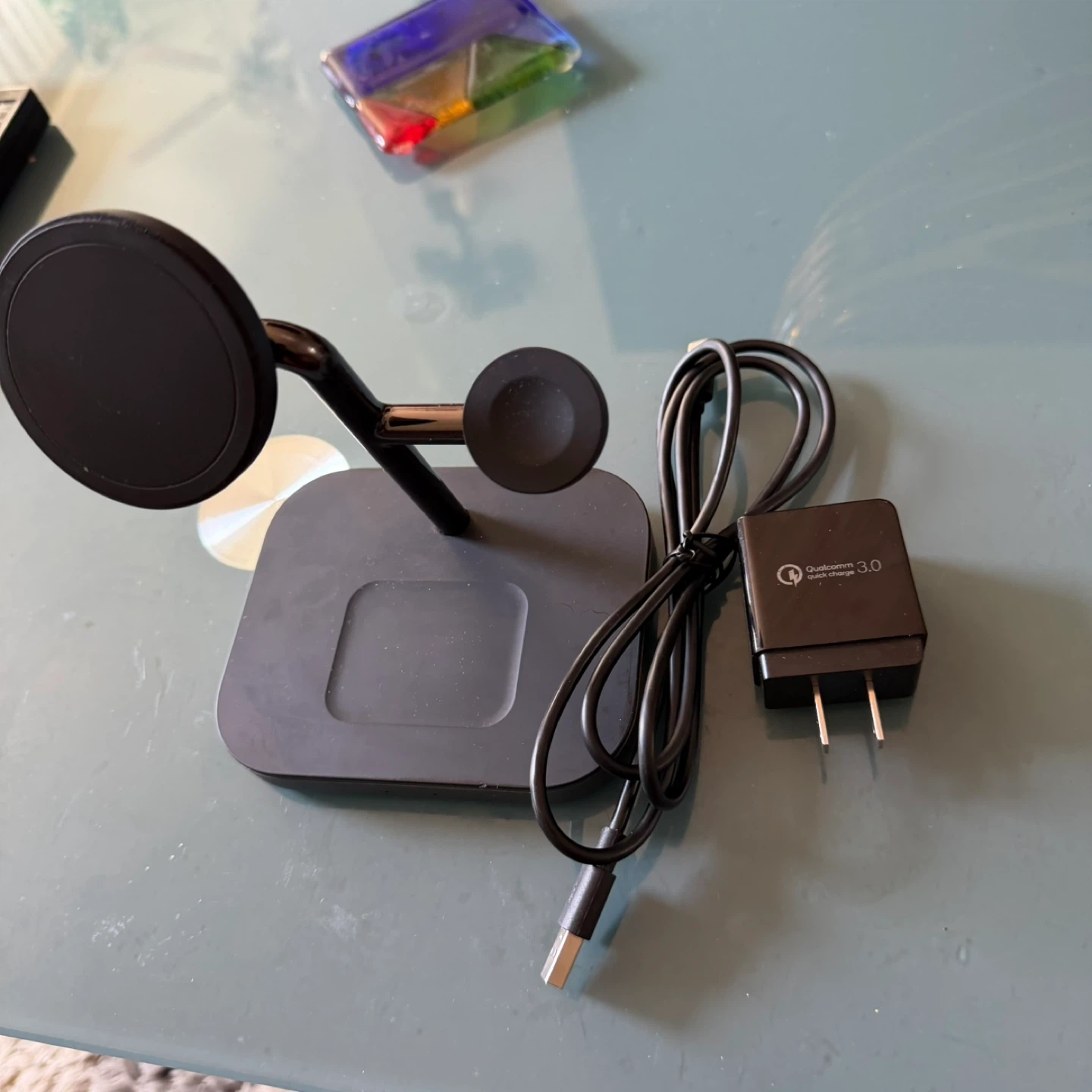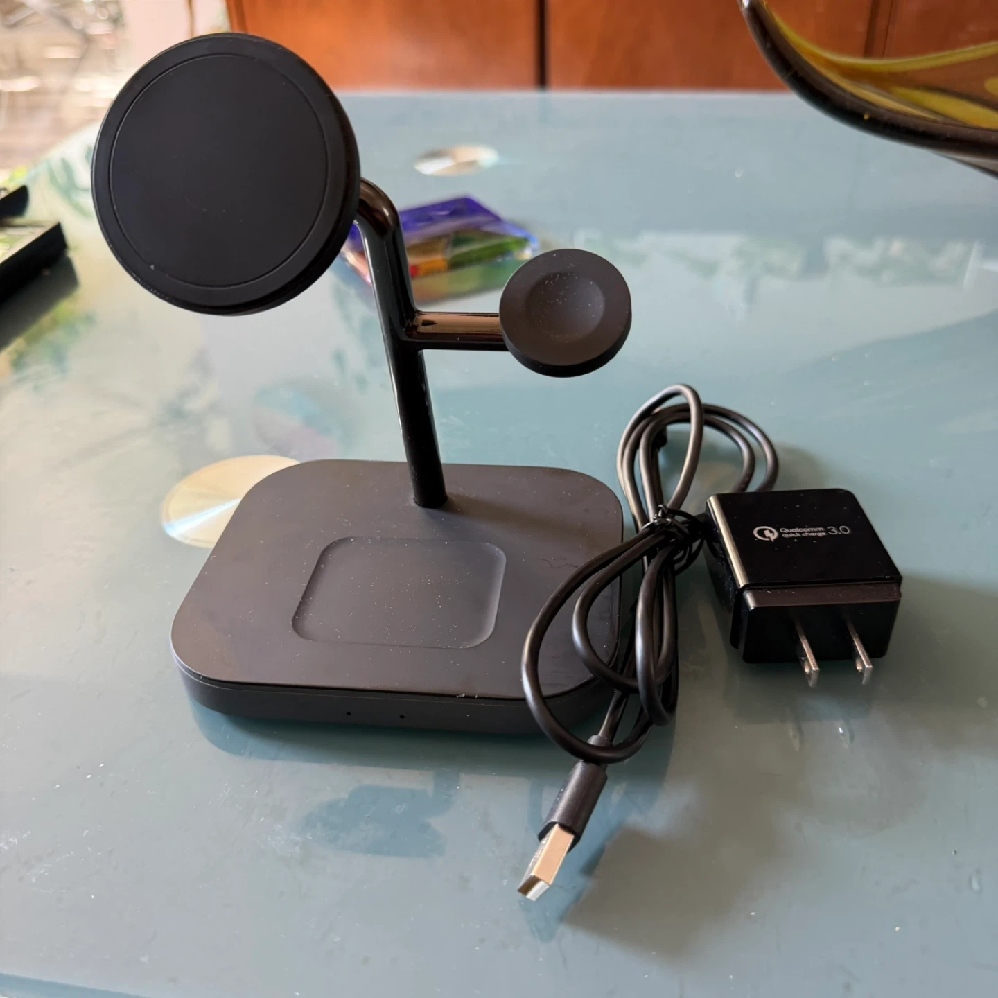 Selling a 3-in-1 wireless charging station! It's perfect for charging your phone, Apple Watch, and AirPods all at once. Comes with the charging station and the adapter