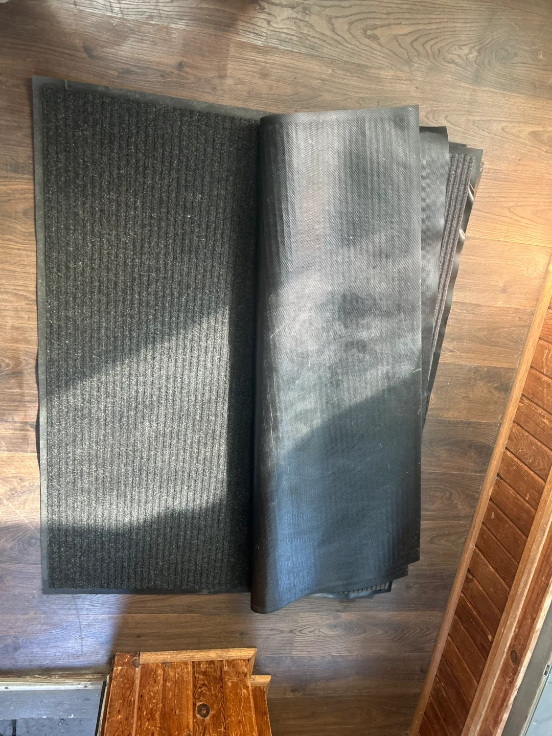 7683 large entrance way floor mats. One grey, two black. Great for the rain, snow and salt season!