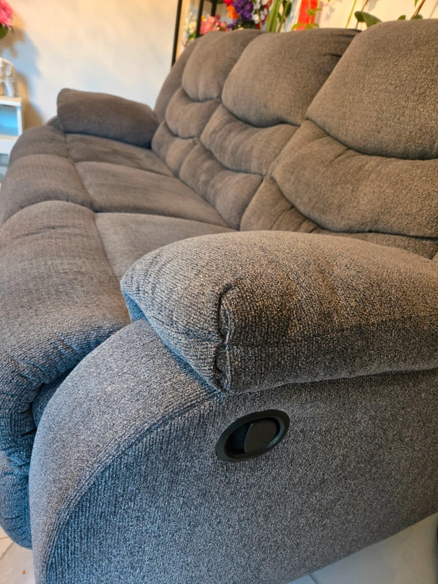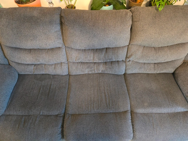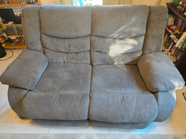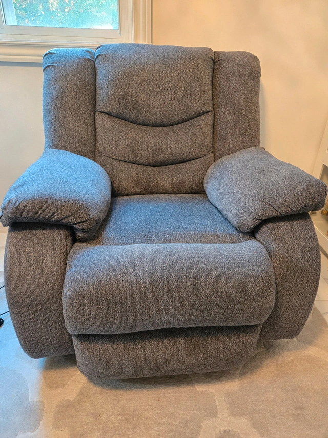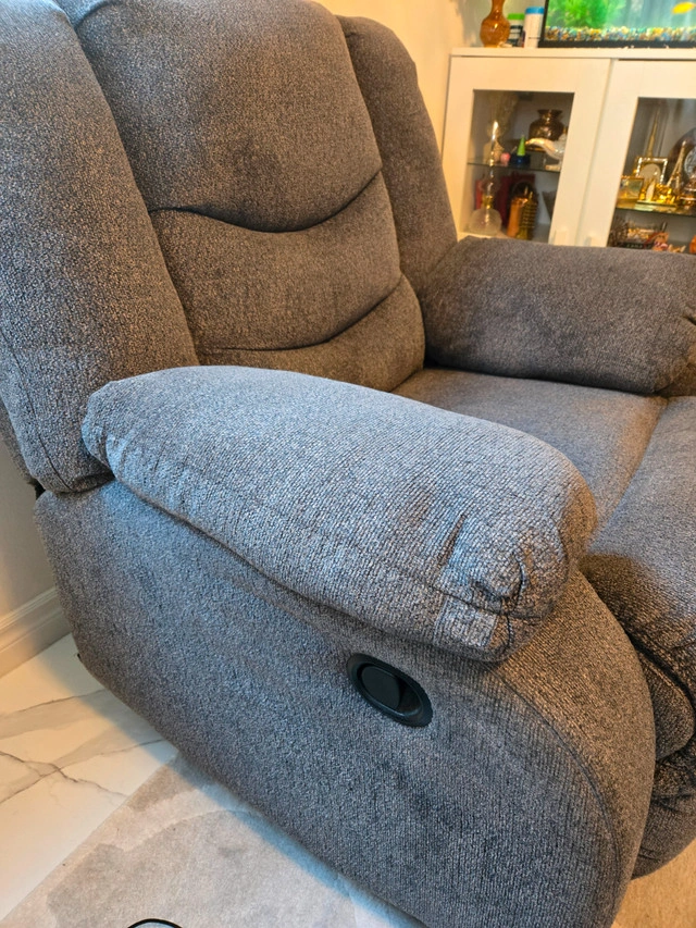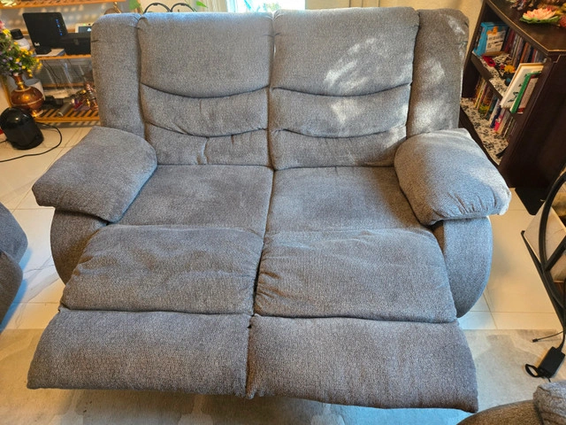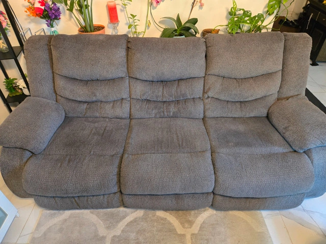 15Beautiful and comfortable 3-piece reclining sofa set from the Ashley Home Store Tulen Collection. Includes: - 1 Single Rocking Recliner - 1 Double Reclining Loveseat - 1 Triple Reclining Sofa (both ends recline) All pieces are in excellent working condition, clean and well-maintained from a smoke-free, pet-free home. This set is extremely comfortable, perfect for family rooms, living rooms, or home theatres. Currently sells for over $3,000 new at Ashley Home Store — get it for a fraction of the price! Asking $750 or best offer Pick-up in Ajax (near Westney & Bayly) Cash or e-transfer accepted Original Product Links: https://ashleyhomestore.ca/products/tulen-rocker-recliner https://ashleyhomestore.ca/products/tulen-reclining-loveseat-2 https://ashleyhomestore.ca/products/tulen-reclining-sofa-2