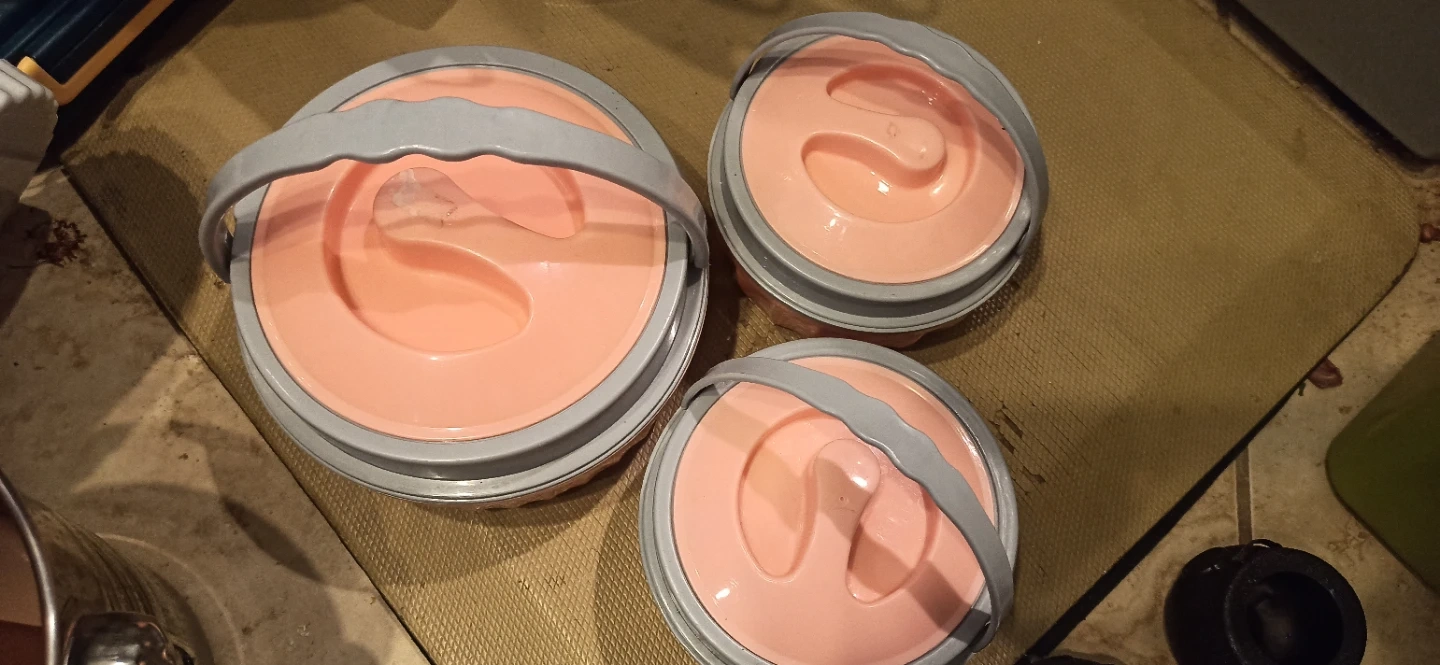 86Selling a set of three food warmers! They're in great shape and ready to keep your meals nice and toasty. The set includes various sizes, perfect for different portions or dishes