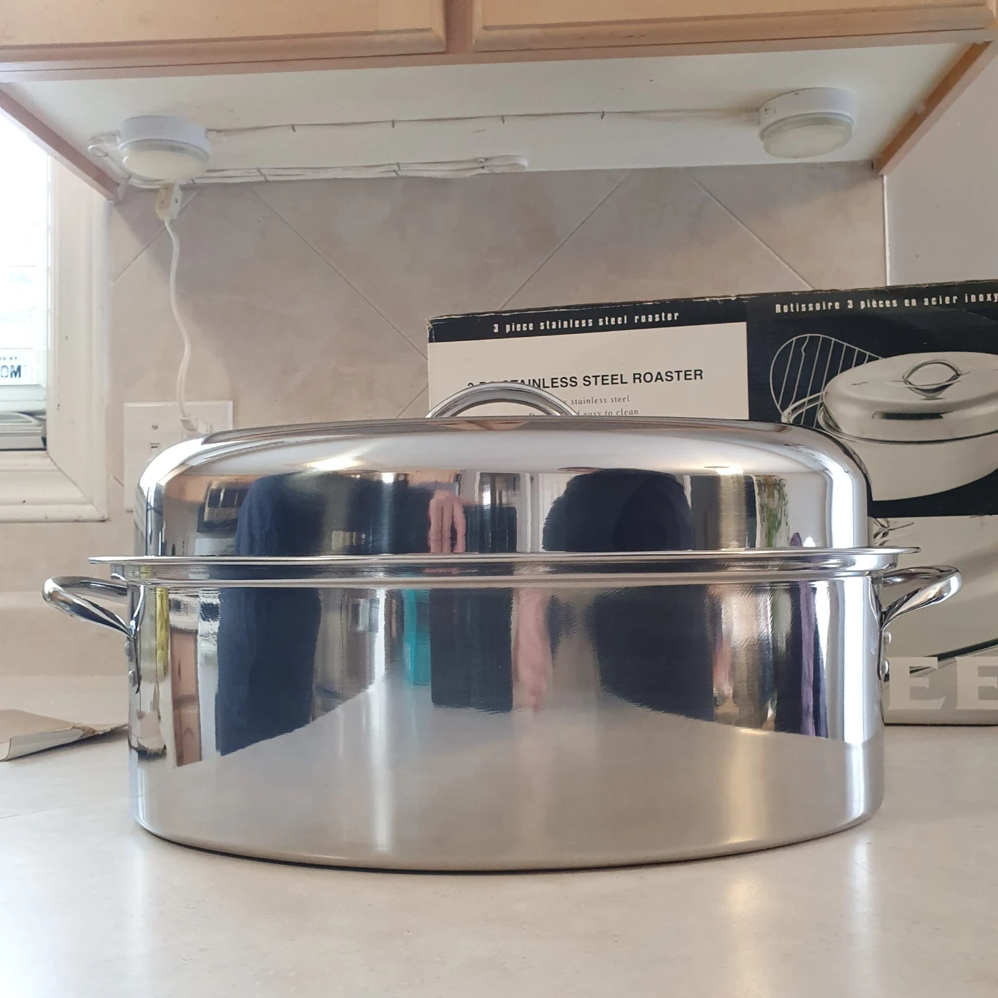 10Selling a 3-piece stainless steel roaster with a rack. It's in great condition and comes with the original box! This roaster is made of stainless steel and is easy to clean.