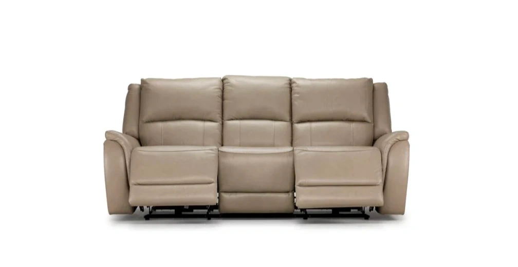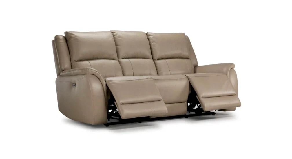 81Selling a three-seat sofa in a lovely beige leather! It features power reclining, so you can kick back and relax with ease. Perfect for a living room or entertainment space where comfort is key